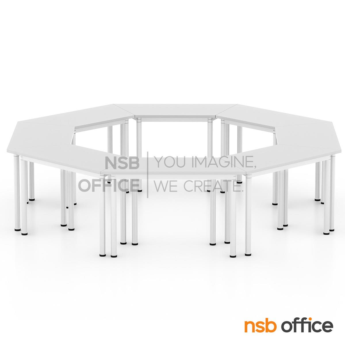 H02A009: โต๊ะเรียนกิจกรรมทรงคางหมู รุ่น Octal 105, 120, 140W cm ไม่มีล้อเลื่อน (สำหรับกลุ่ม 8 คน)