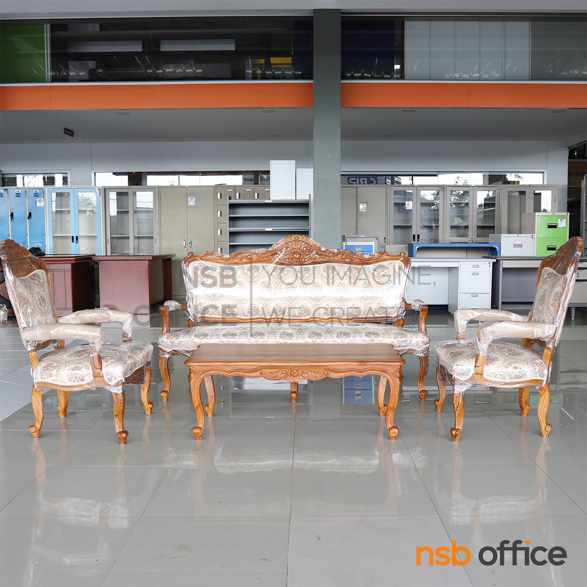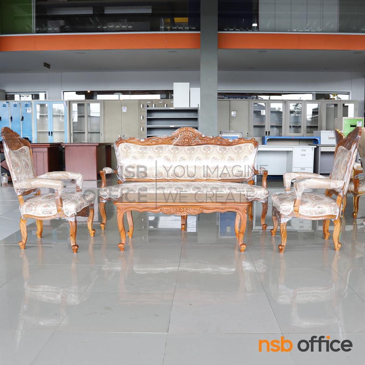 : ชุดโซฟาหลุยส์ดอกเบญจมาศ สีสักล้วน พร้อมโต๊ะกลาง โครงไม้สักแท้