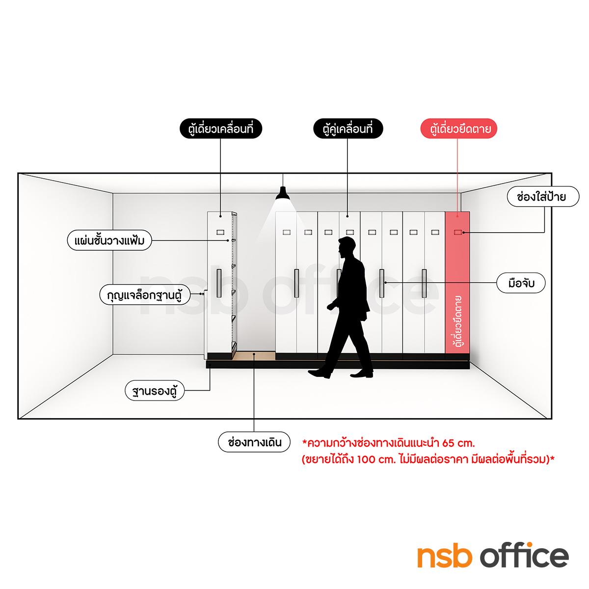 ประกอบด้วย 2 ตู้เดี่ยว และ 1 ตู้คู่ ช่องทางเดิน 65 cm. (ใส่ได้ประมาณ 220 แฟ้ม)