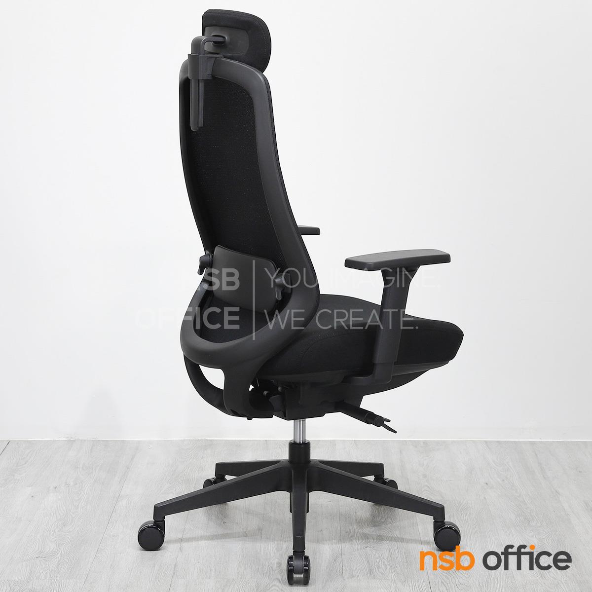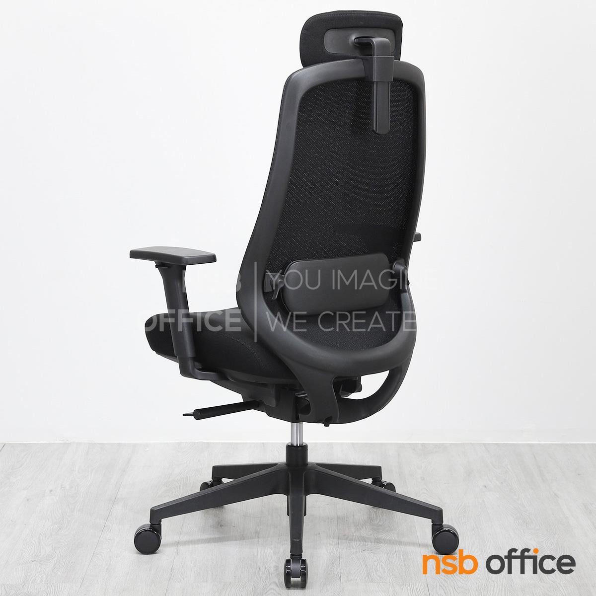 พนักพิงผลิตจากผ้าตาข่าย (Mesh) คุณสมบัติระบายอากาศได้ดี ลดความร้อนสะสมขณะใช้งาน พร้อมโครงสร้างรองรับแผ่นหลังเพื่อความสบายและรองรับสรีระในการนั่งทำงานระยะยาว