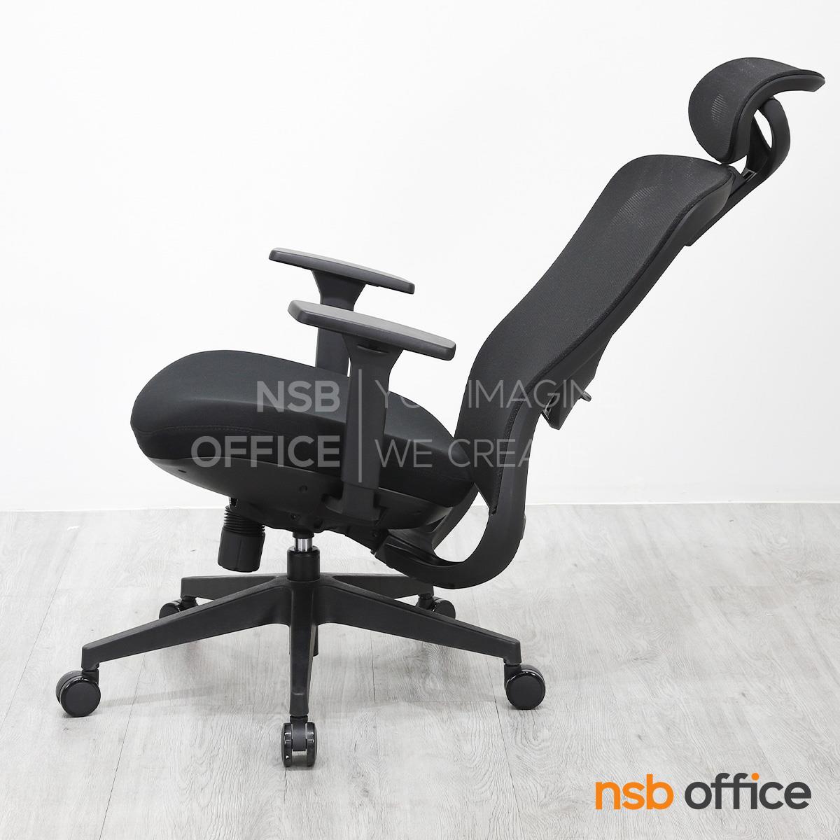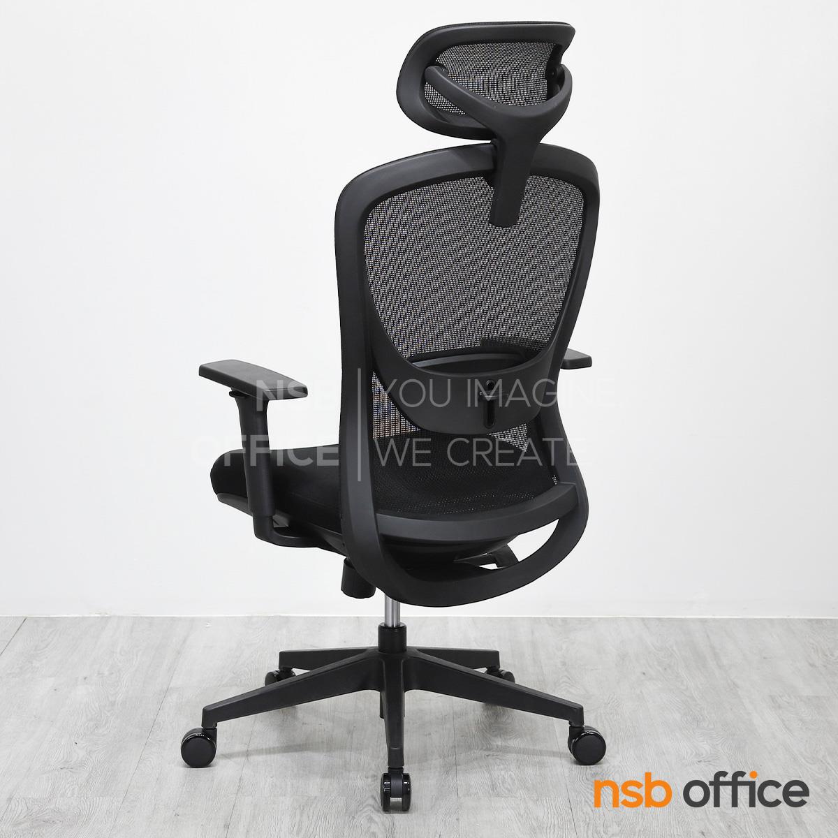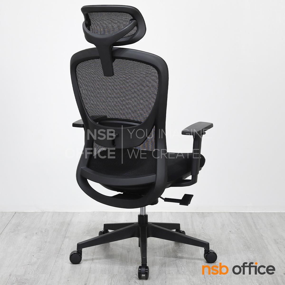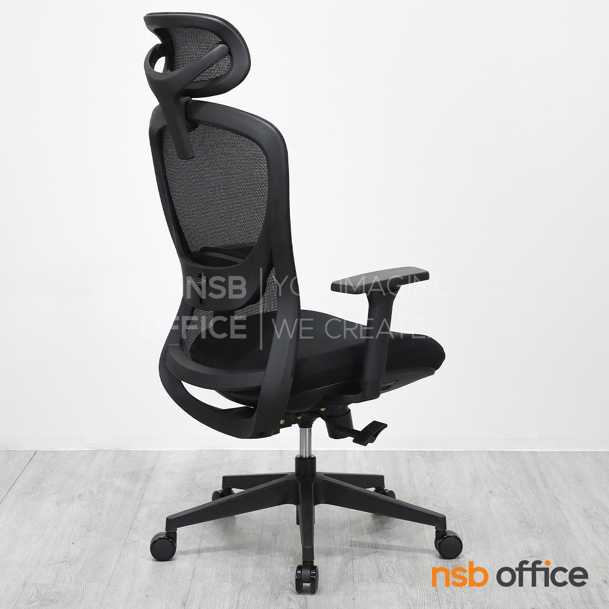 พนักพิงผลิตจากผ้าตาข่าย (Mesh) คุณสมบัติระบายอากาศได้ดี ลดความร้อนสะสมขณะใช้งาน พร้อมโครงสร้างรองรับแผ่นหลังเพื่อความสบายและรองรับสรีระในการนั่งทำงานระยะยาว