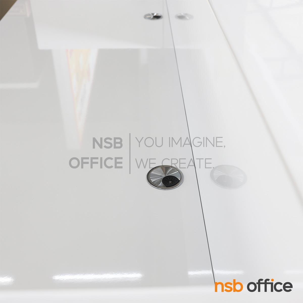 หน้าท็อปโต๊ะมีช่องสำหรับร้อยสายไฟ