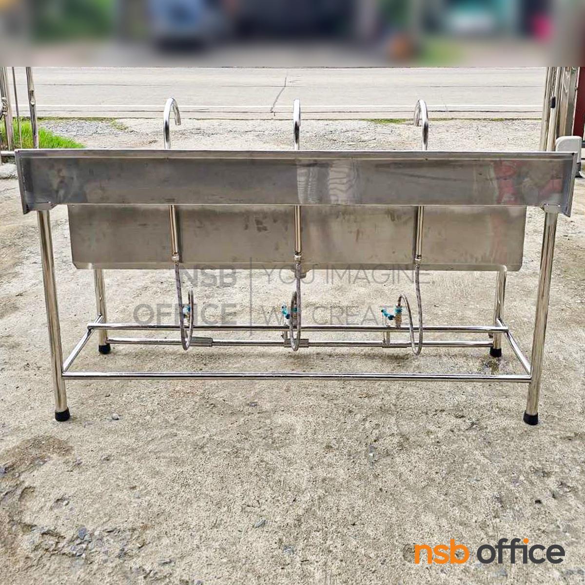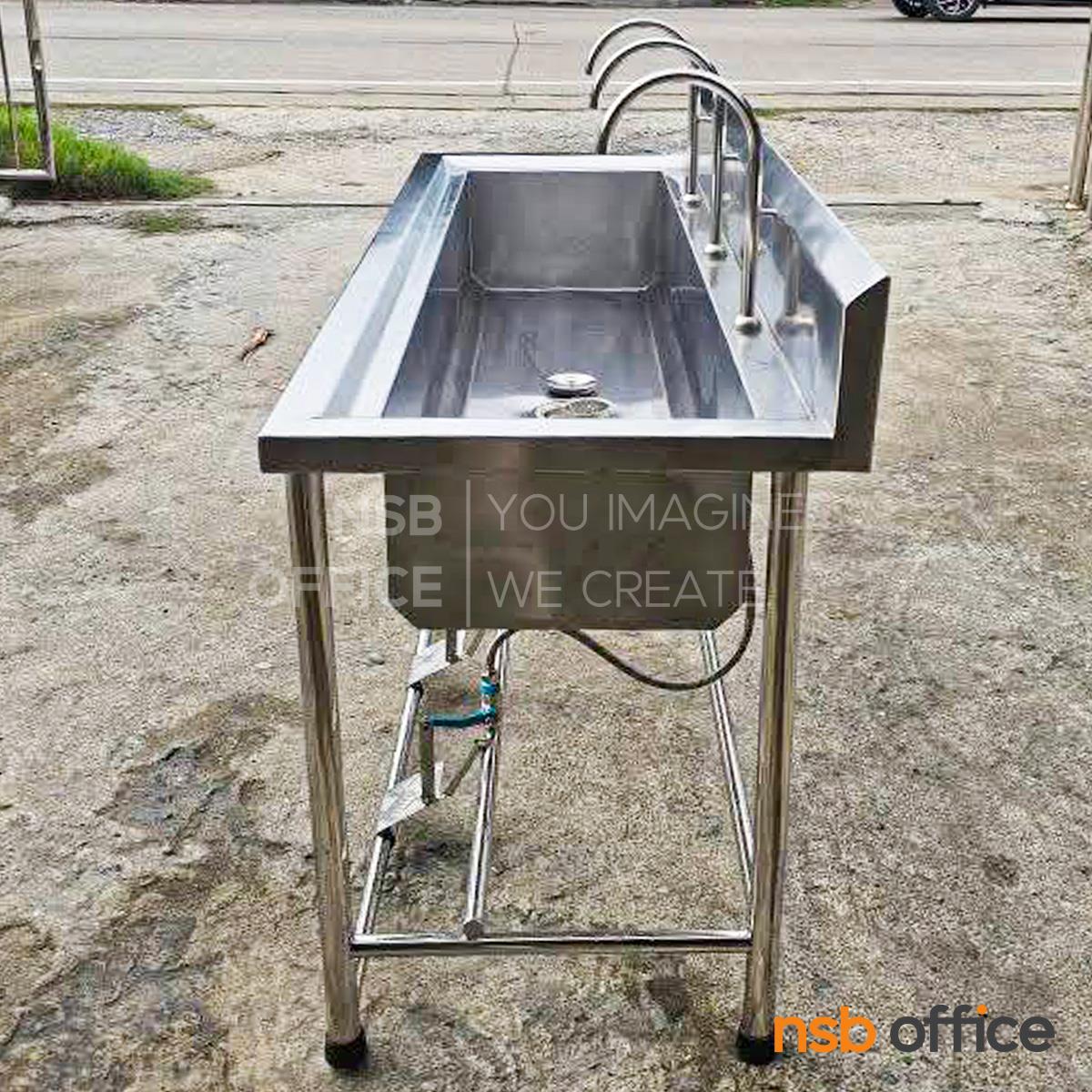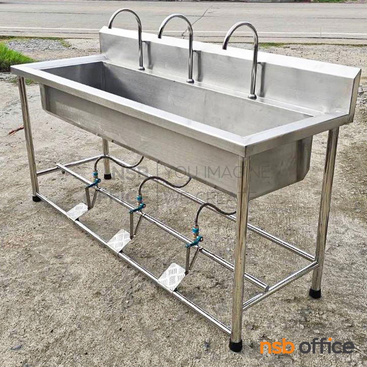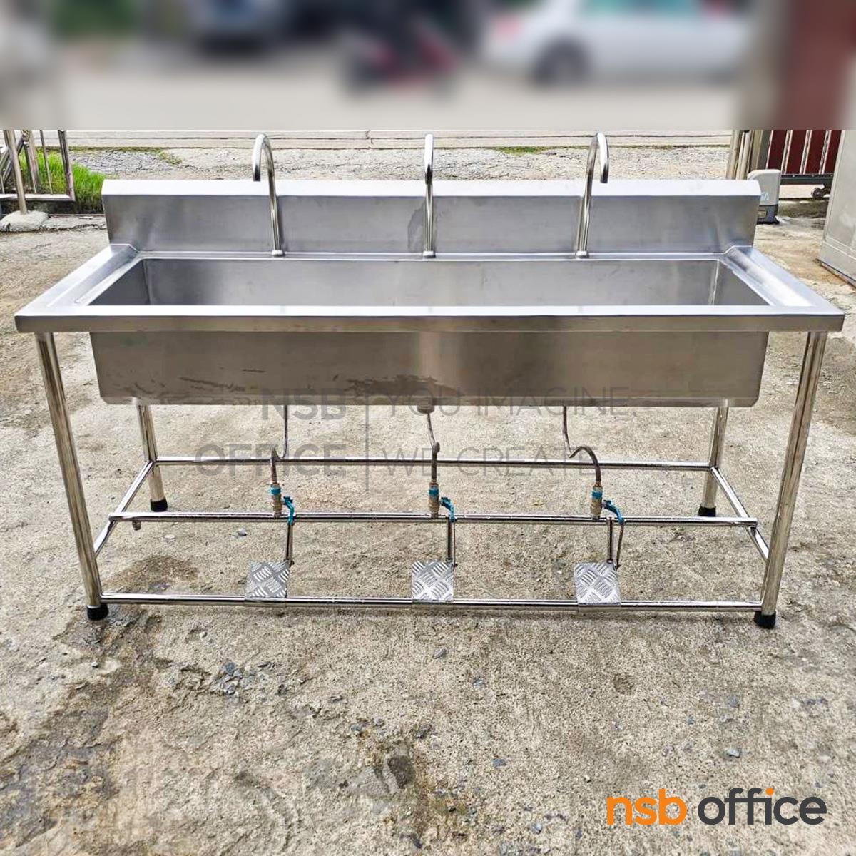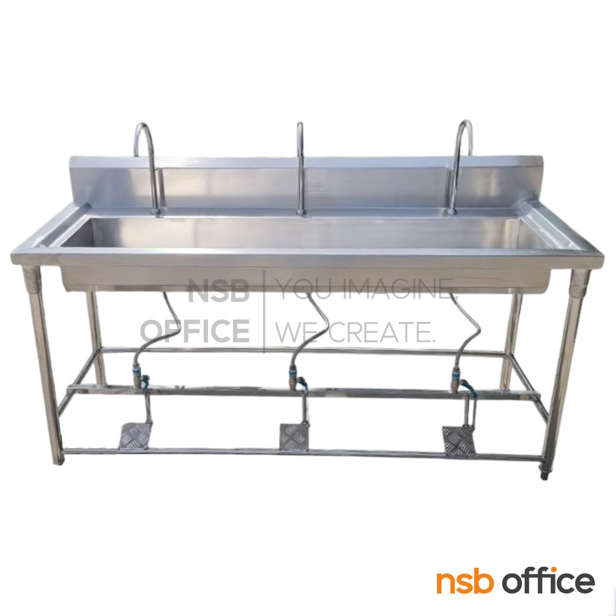 อ่างล้างมือ 1 หลุมยาว 3 ก็อกน้ำ เท้าเหยียบ