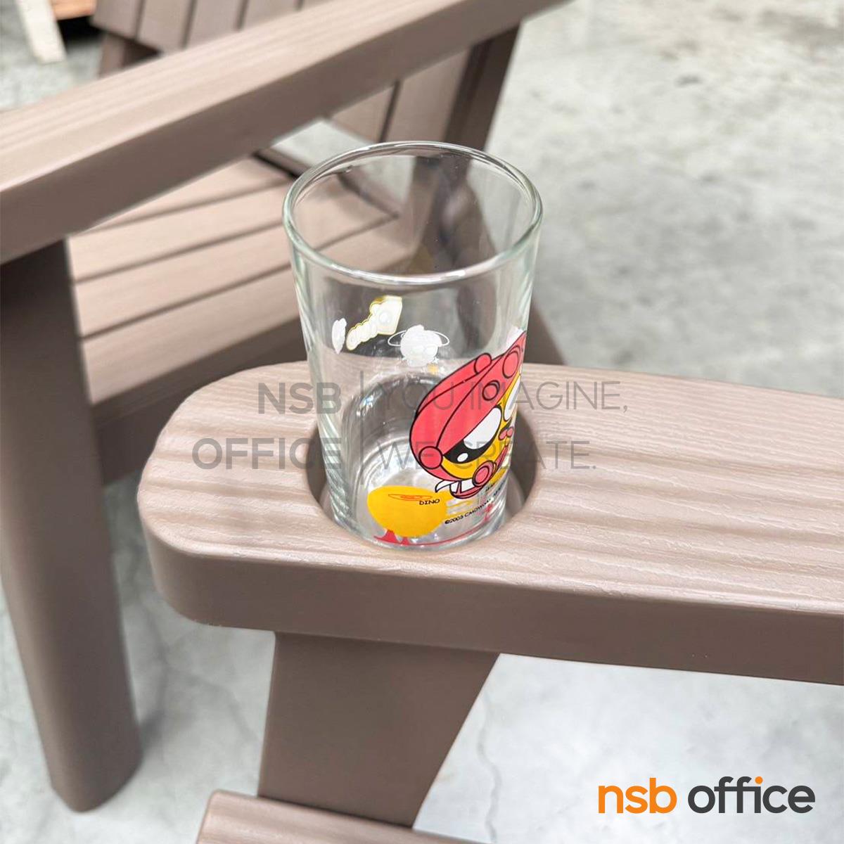 เก้าอี้มีที่วางแก้วน้ำอยู่ทางด้านขวาของเท้าแขน