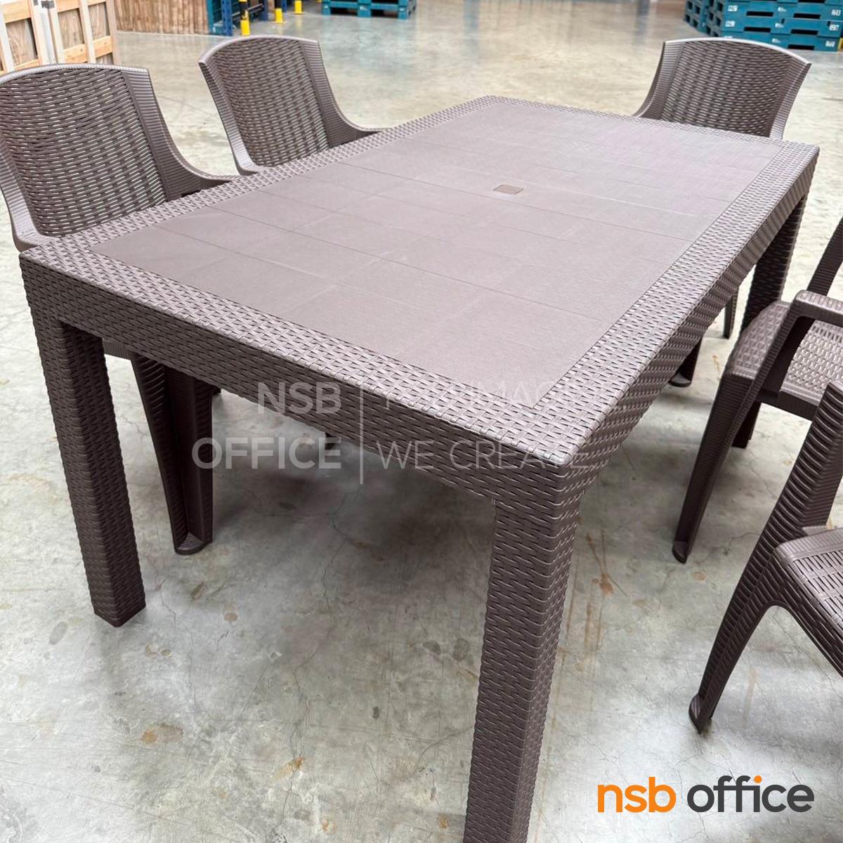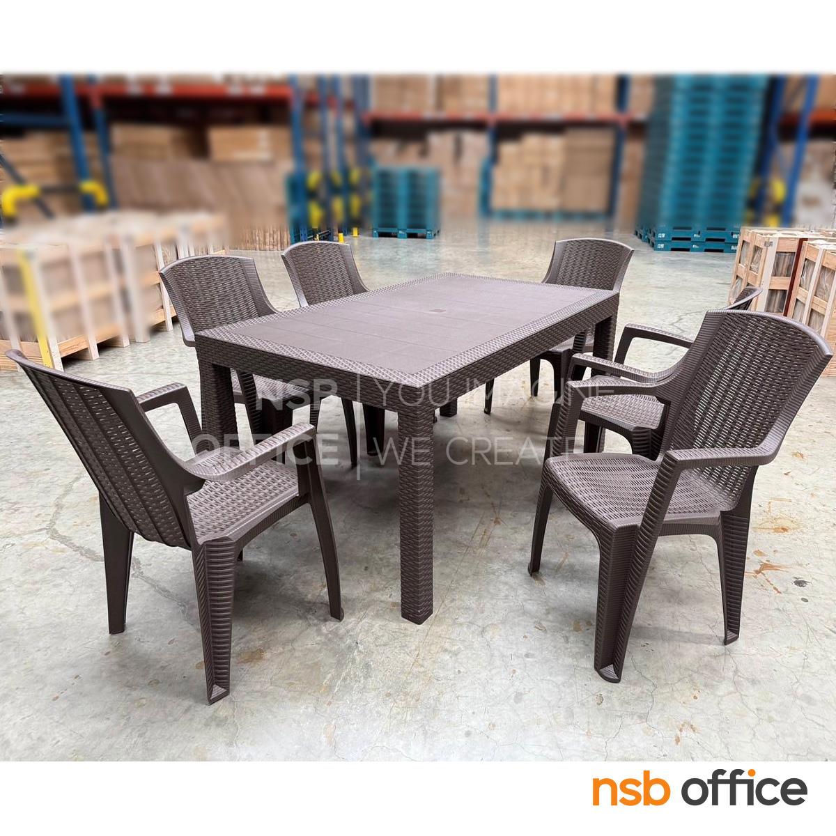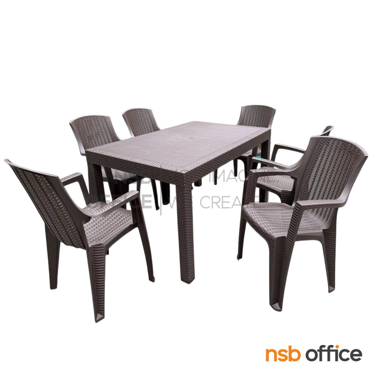 G08A364: ชุดโต๊ะสนามพลาสติก 6 ที่นั่ง รุ่น Bonjour (บงชูร์) โครงพลาสติกพียู
