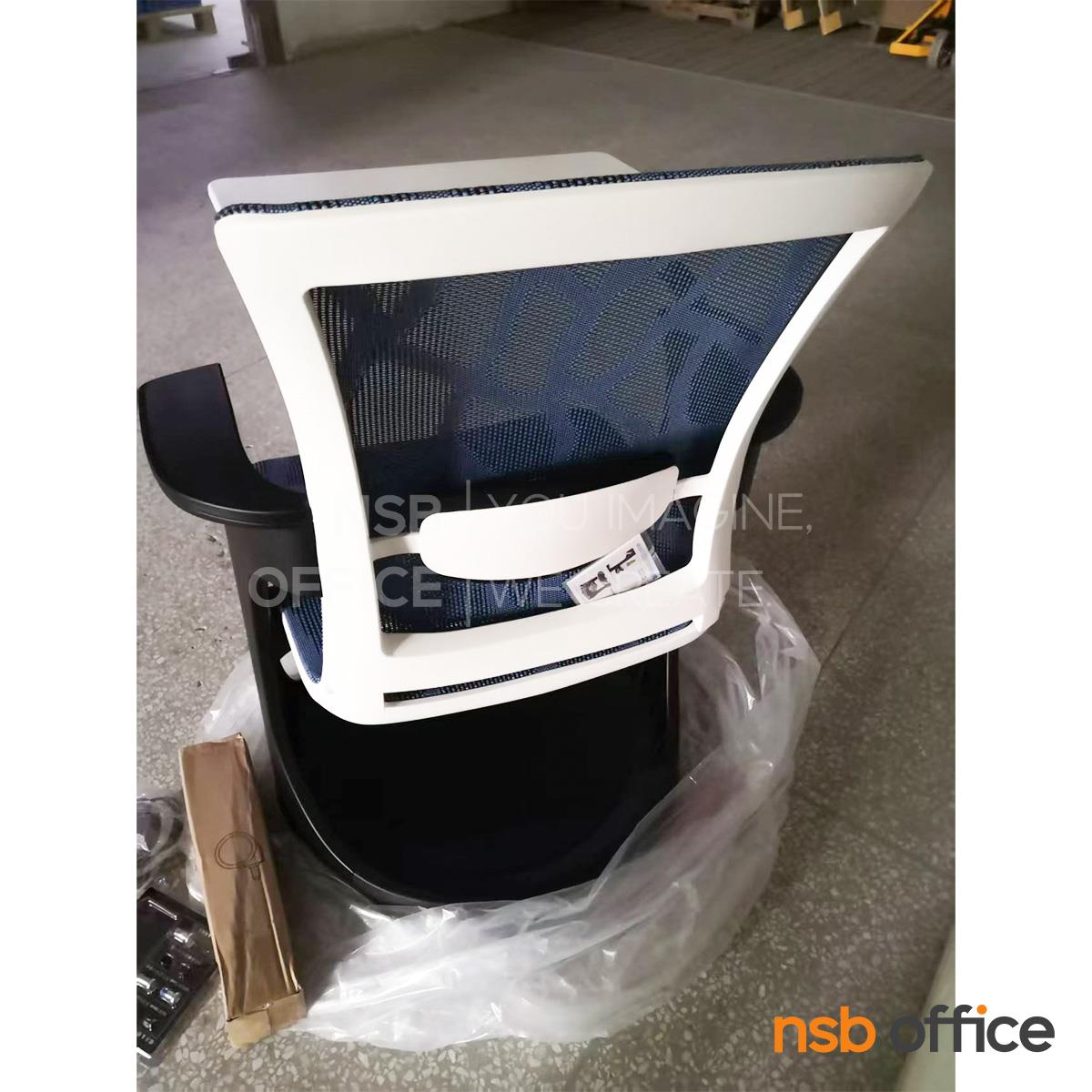 พนักพิงผลิตจากผ้าตาข่าย (Mesh) คุณสมบัติระบายอากาศได้ดี ลดความร้อนสะสมขณะใช้งาน พร้อมโครงสร้างรองรับแผ่นหลังเพื่อความสบายและรองรับสรีระในการนั่งทำงานระยะยาว