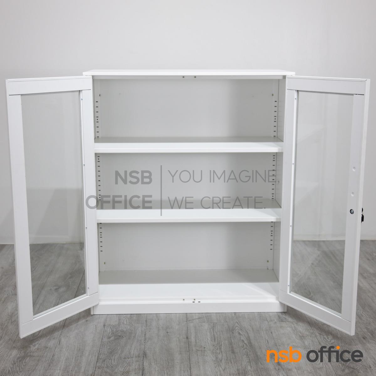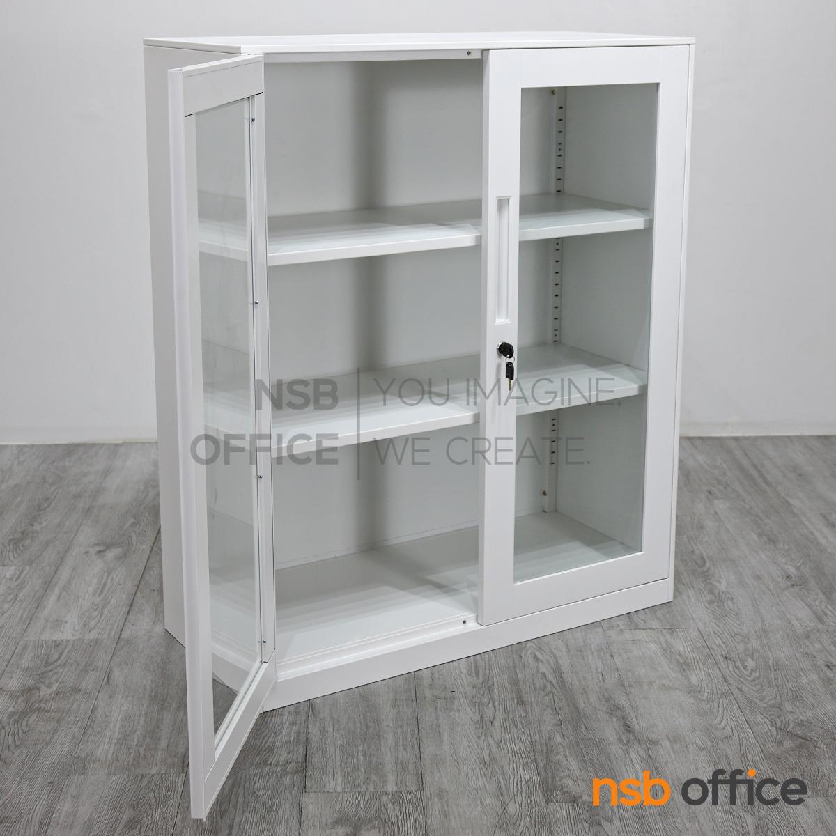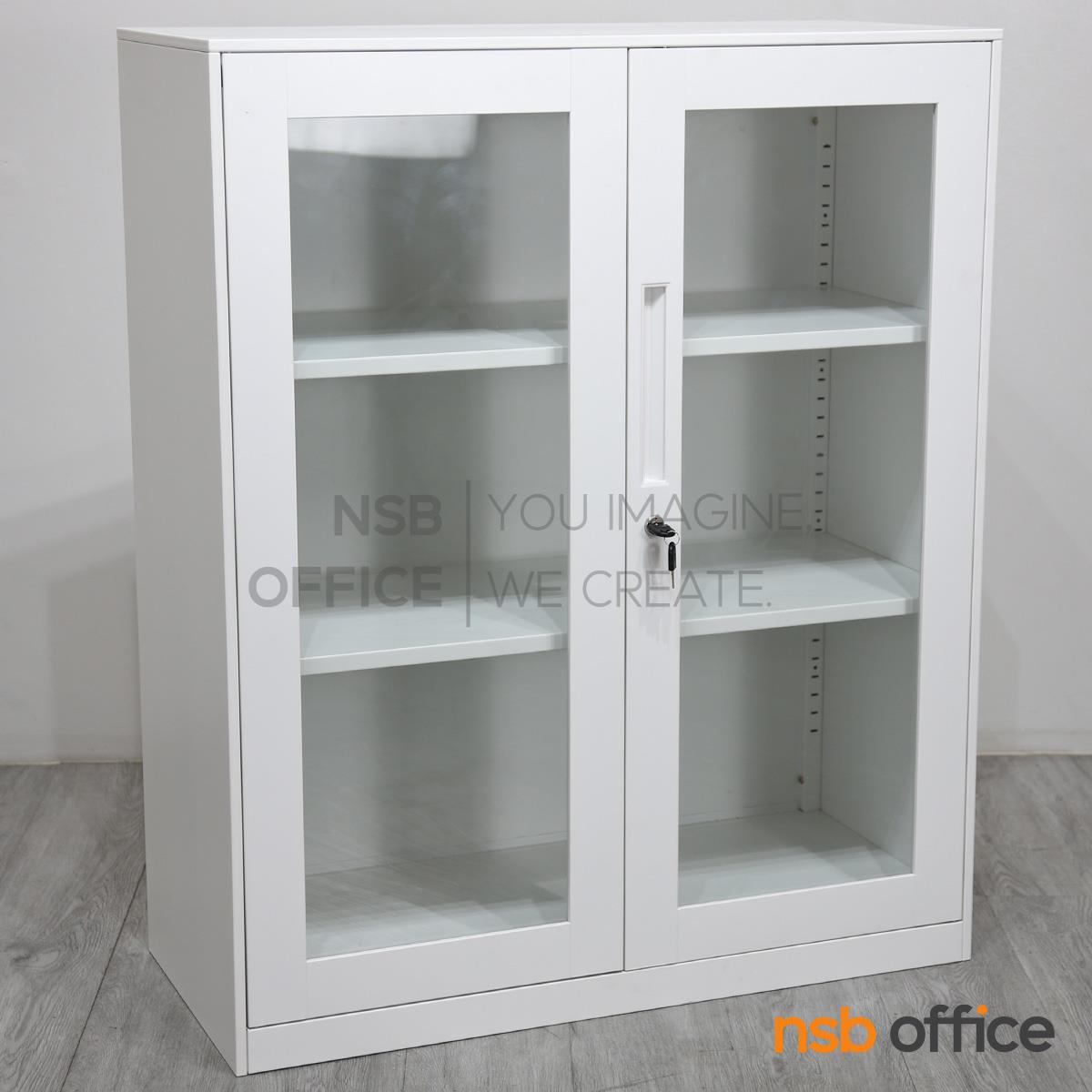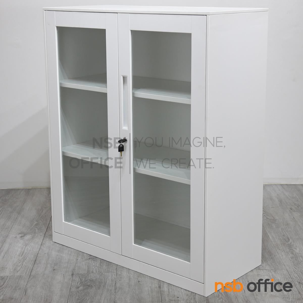 : ตู้เหล็ก 2 บานเปิดกระจก รุ่น Mavilla (มาวิลล่า) ขนาด 90W* 40D* 109H cm.