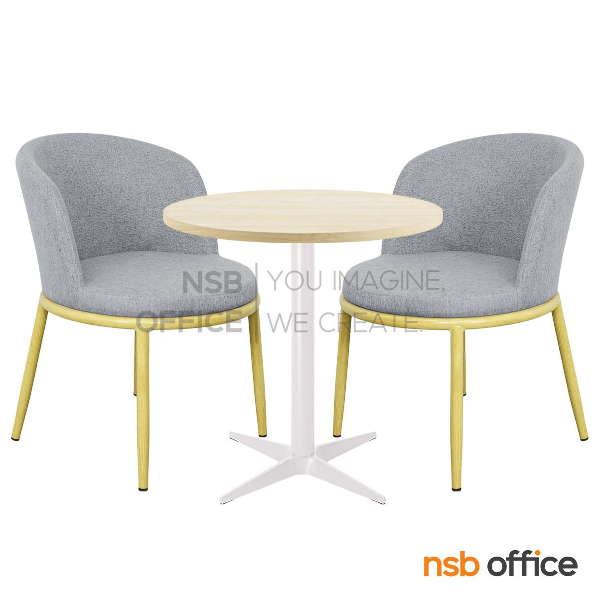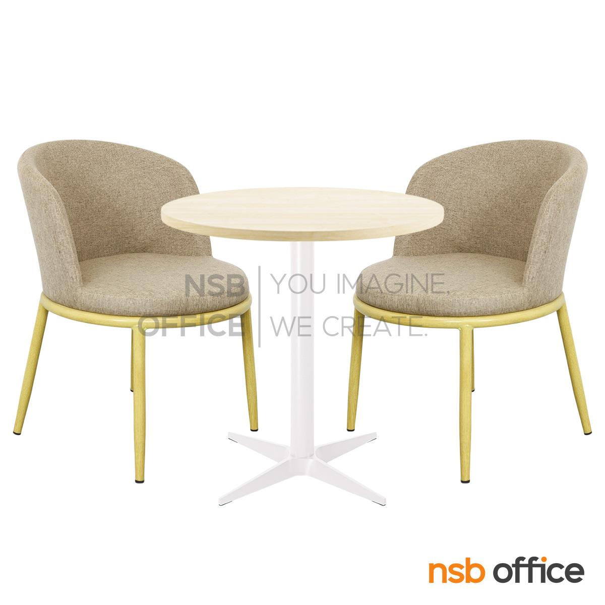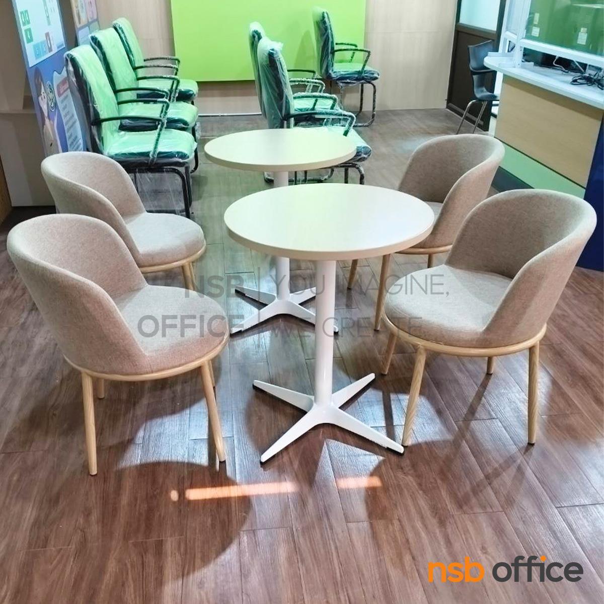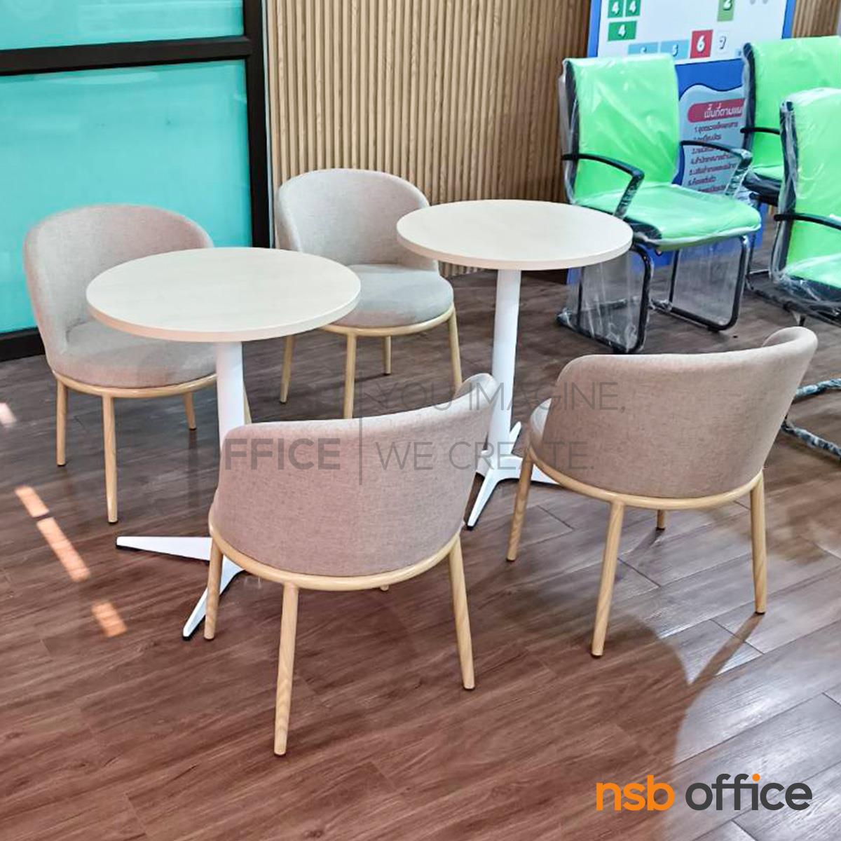 A32A009: ชุดโต๊ะหน้าท็อปเมลามีน รุ่น Mandolin (แมนโดลิน) ขนาด 60Di cm. โครงขาเหล็ก 4 แฉกพ่นสีขาว