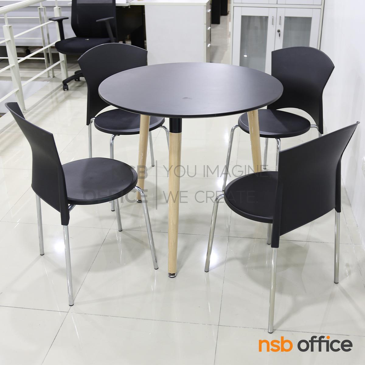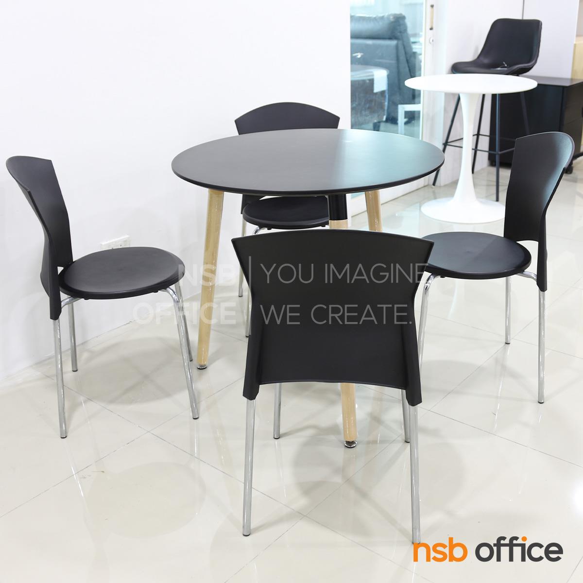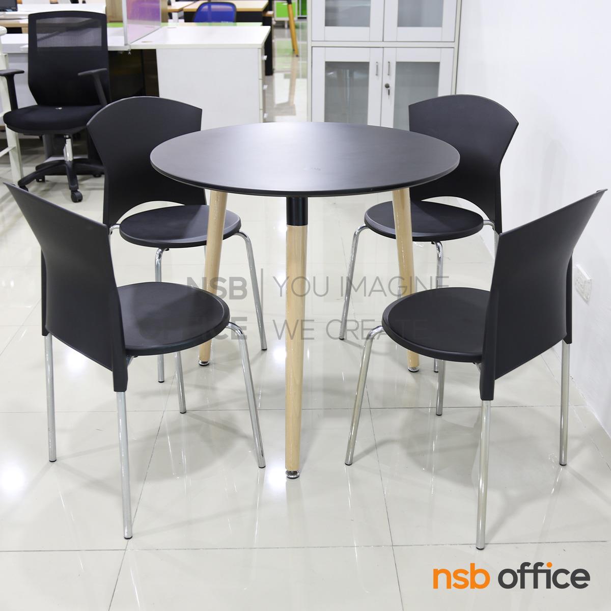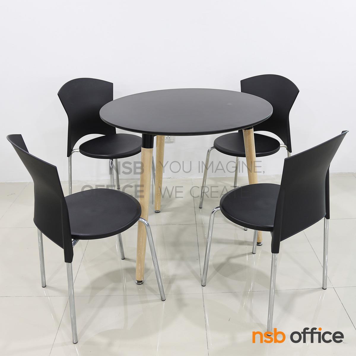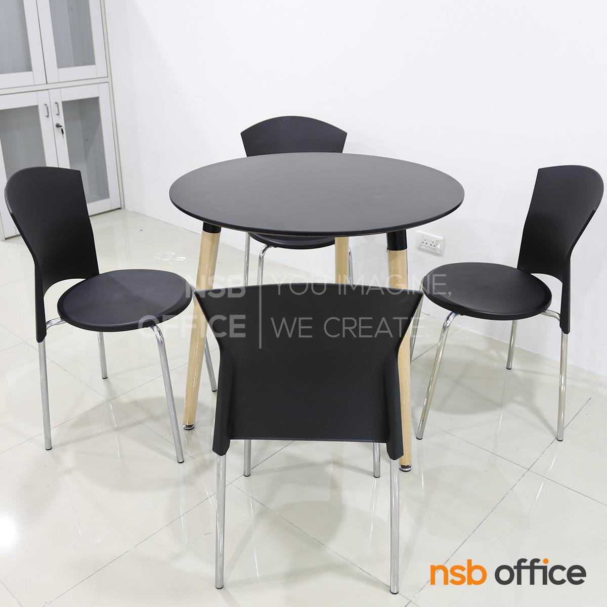 L08A114: ชุดโต๊ะหน้าไม้ 4 ที่นั่ง รุ่น Accio (แอ๊กซิโอ) ขนาด 80Di cm. พร้อมเก้าอี้โพลี่ดำ