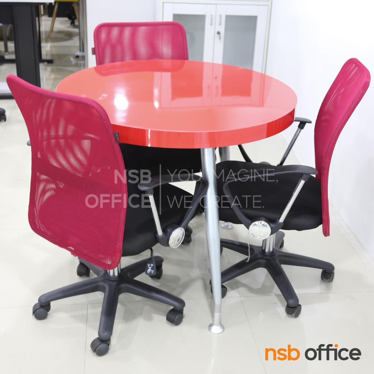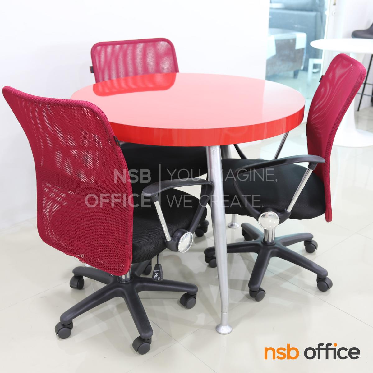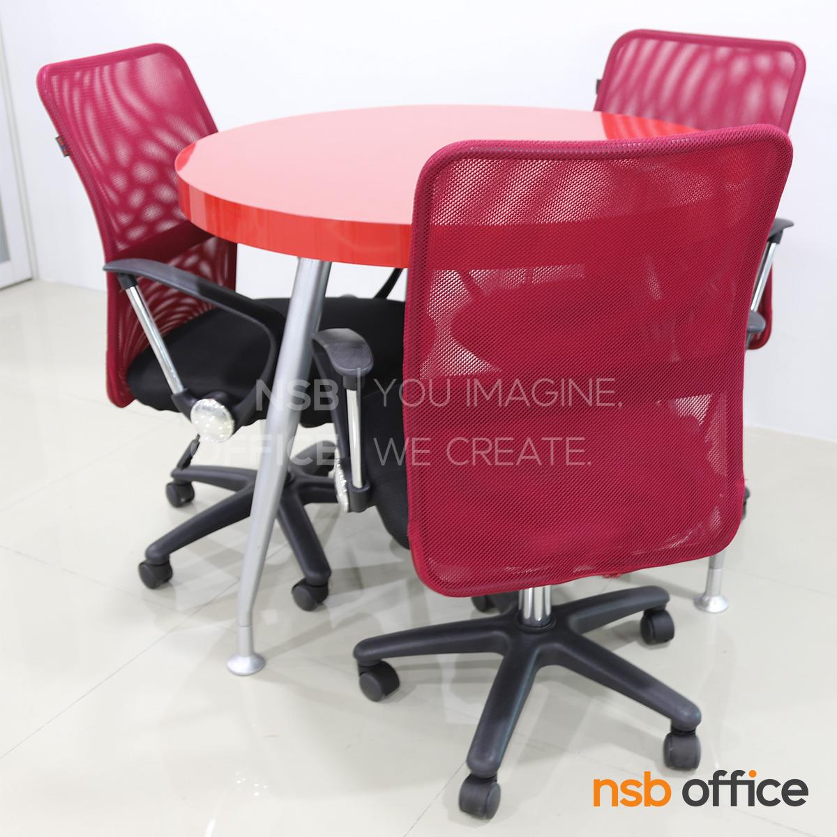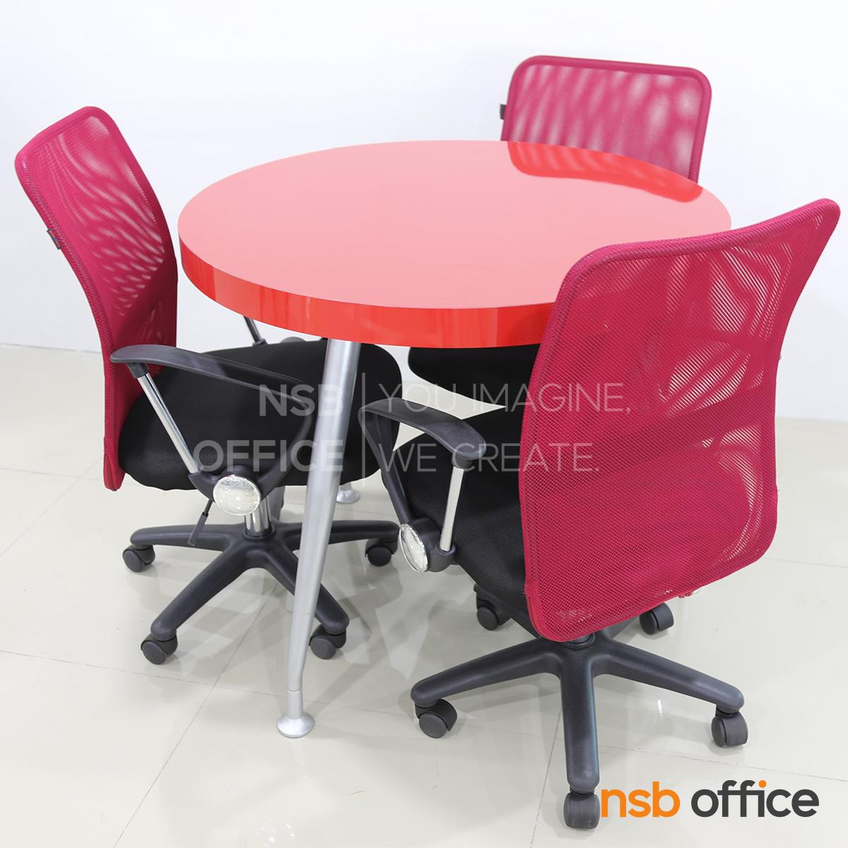 L08A126: ชุดโต๊ะประชุมเล็ก 3 ที่นั่ง รุ่น Dolomite (โดโลไมต์) ขนาด 90Di cm. พร้อมเก้าอี้สำนักงานหลังเน็ต