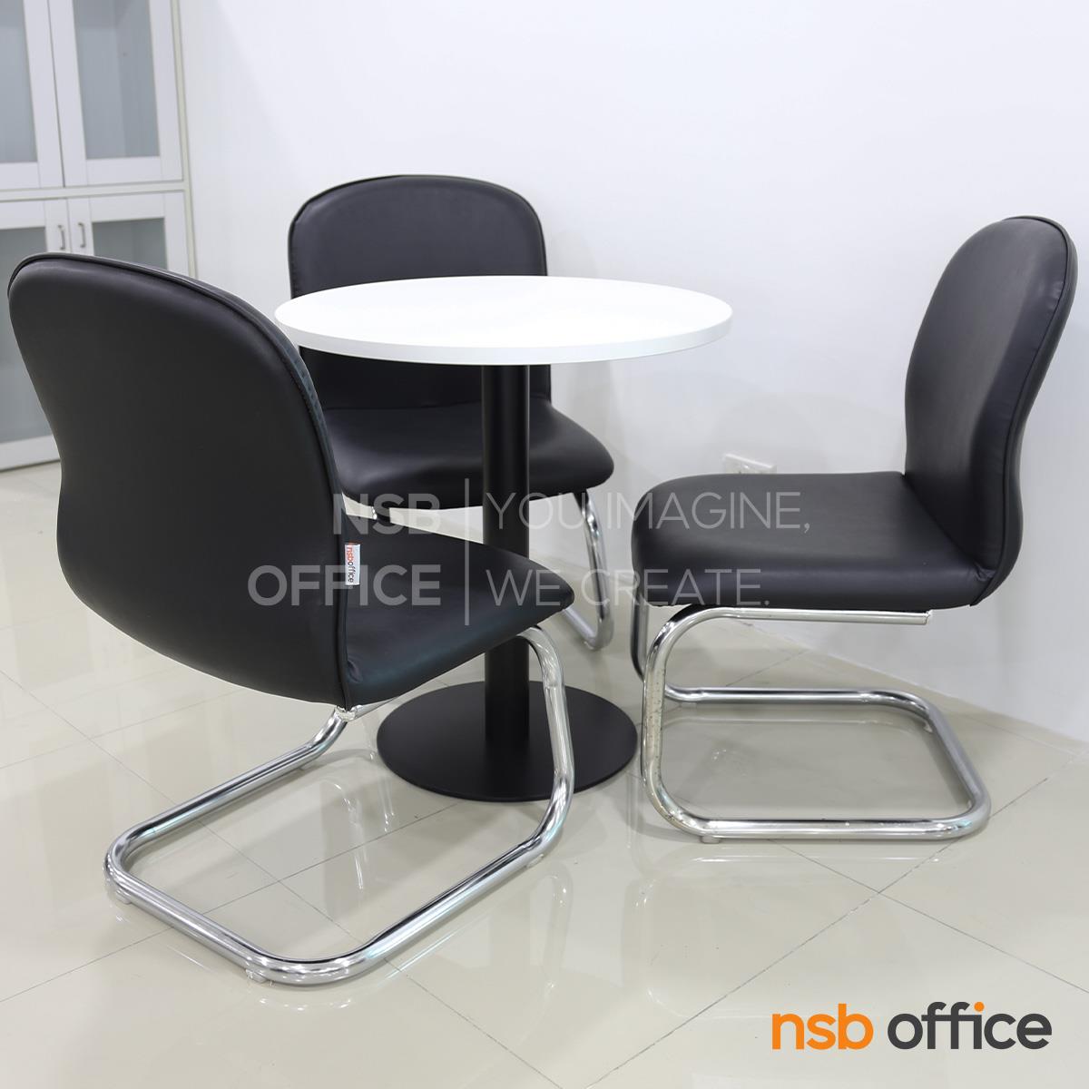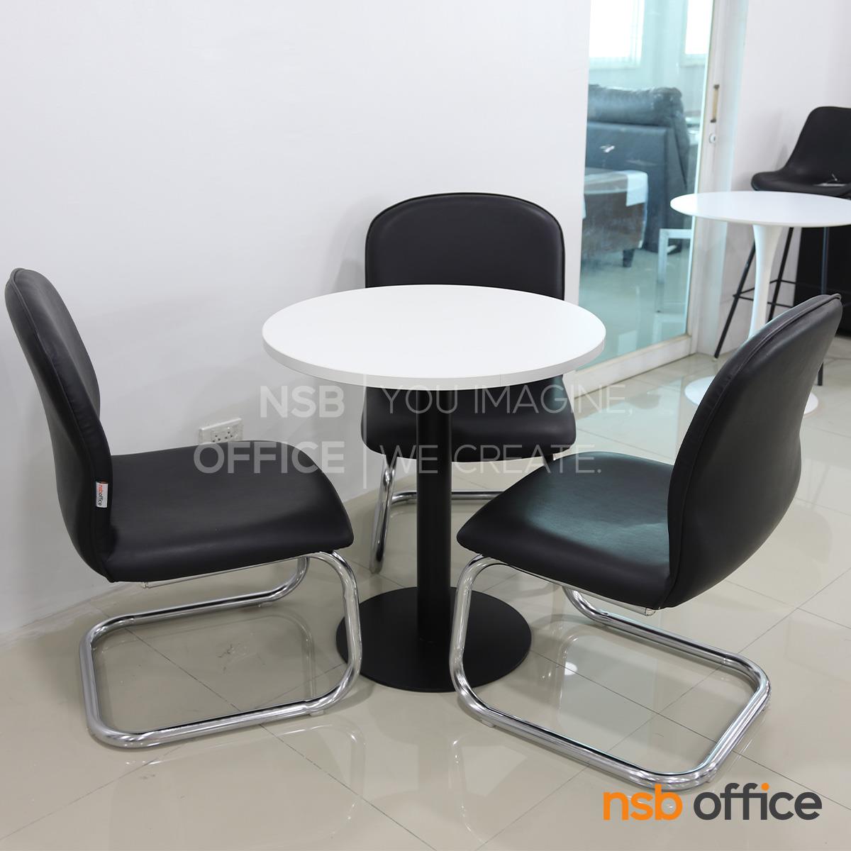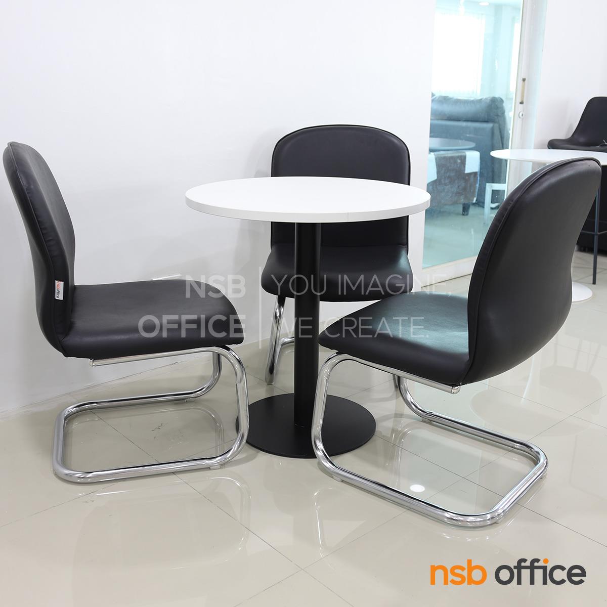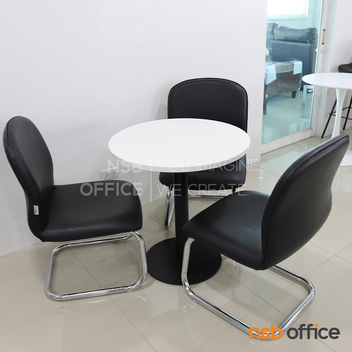 L08A129: ชุดโต๊ะประชุมเล็กหน้าไม้เมลามีน 3 ที่นั่ง รุ่น Enrico (เอ็นริโก้) ขนาด 70Di cm. พร้อมเก้าอี้ขาตัวซีหุ้มหนังเทียม