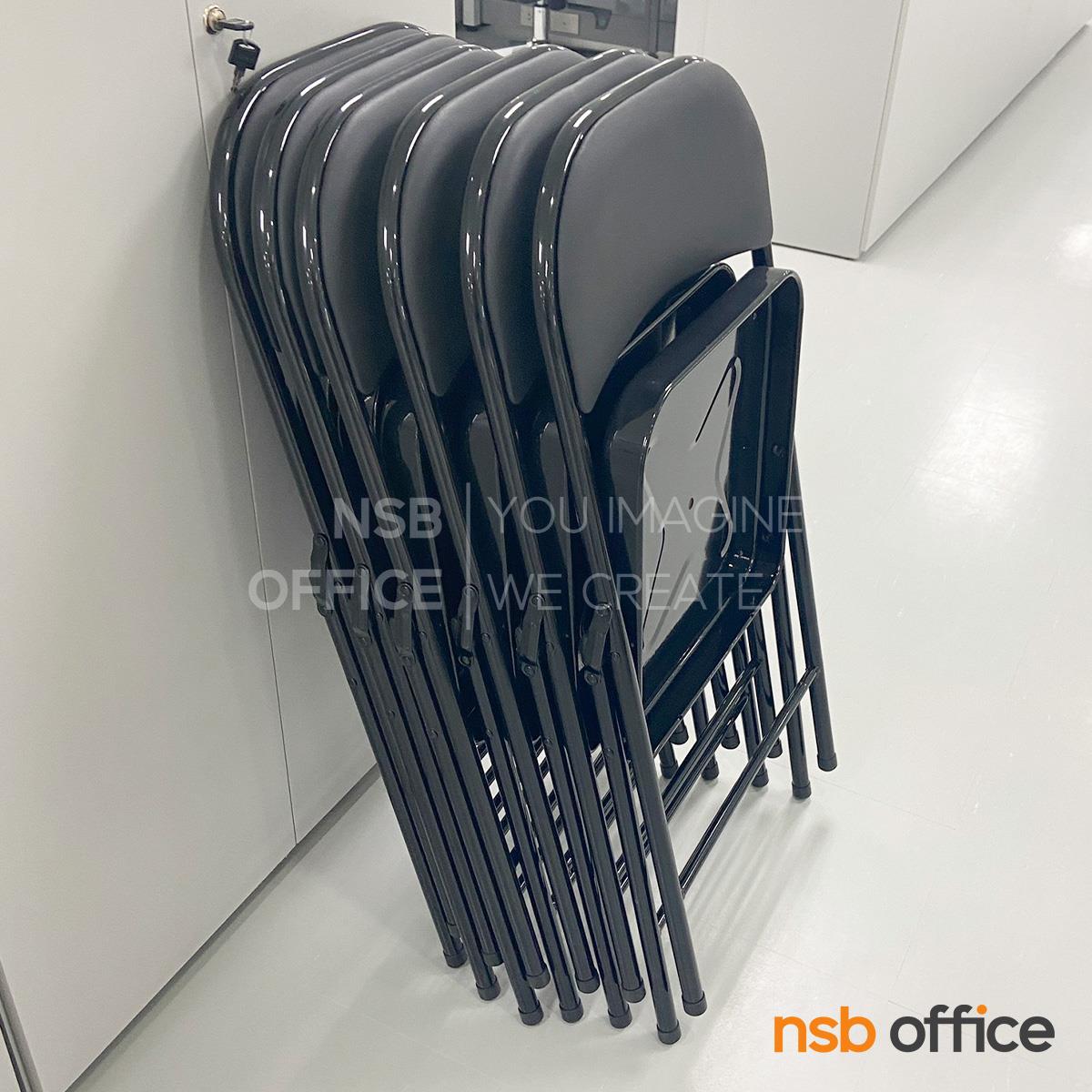 B10A108: เก้าอี้พับที่นั่งหุ้มเบาะหนังเทียม รุ่น Galinda (กาลินดา) ขาเหล็กสีดำ