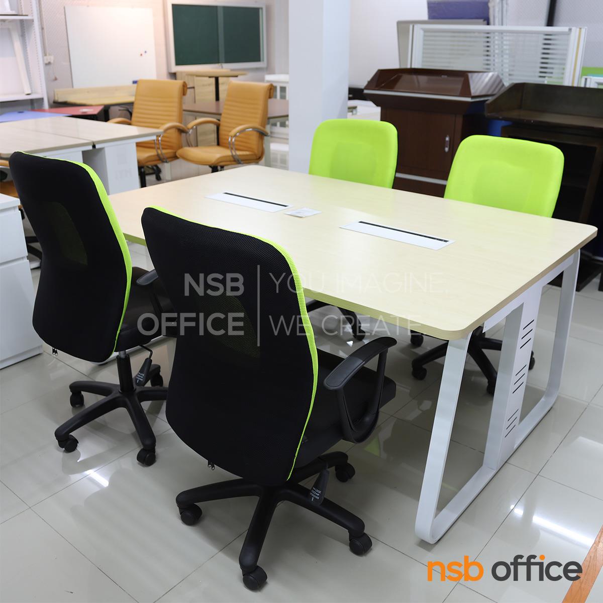 : ชุดโต๊ะทำงาน 4 ที่นั่ง รุ่น Crimson (คริมสัน) พร้อมเก้าอี้สำนักงานหลังเน็ต