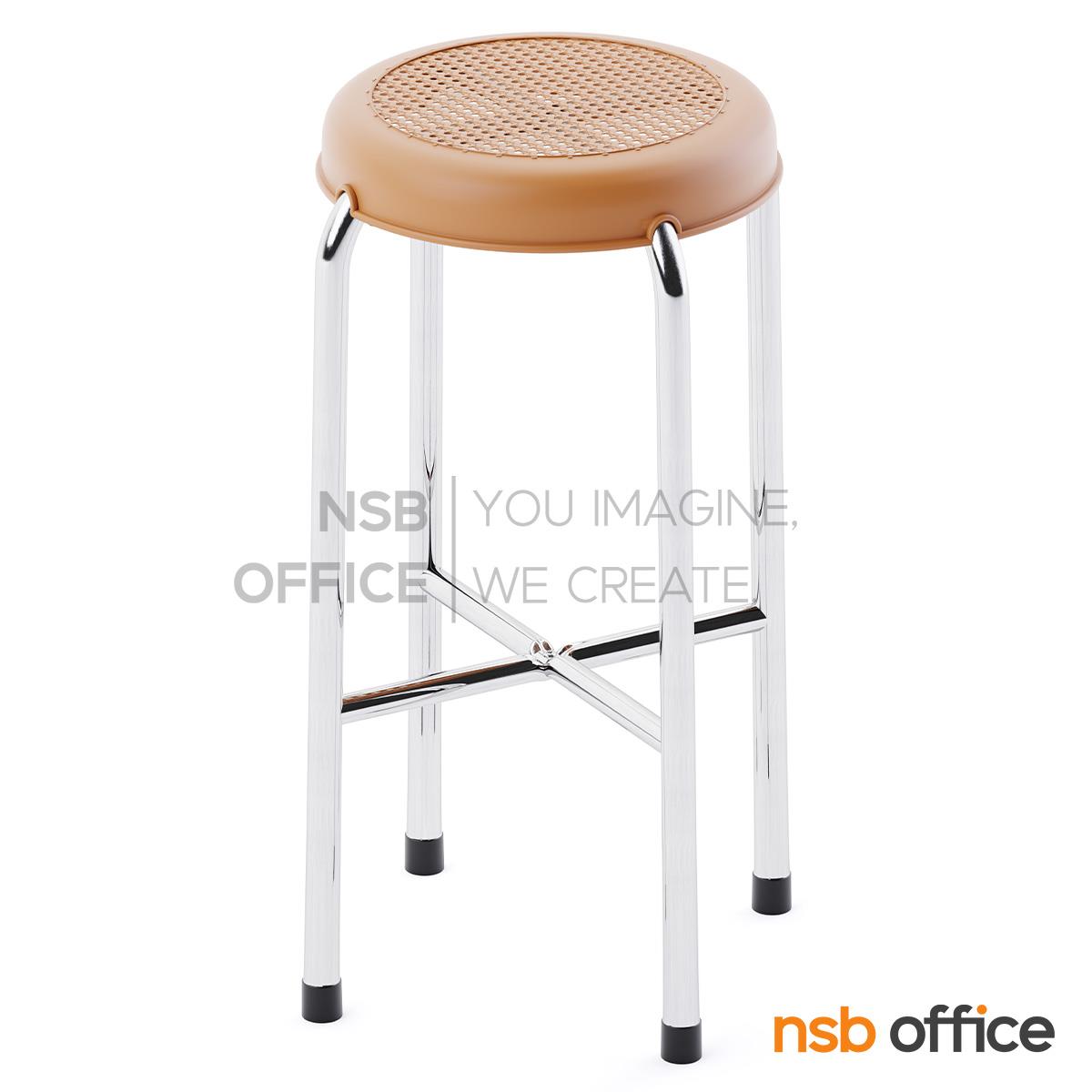 B46A003: เก้าอี้สตูลกลมที่นั่งพลาสติกลายหวาย รุ่น Tempo (เทมโป้) ขนาด 33Di*70H cm.ขาเหล็กกลม