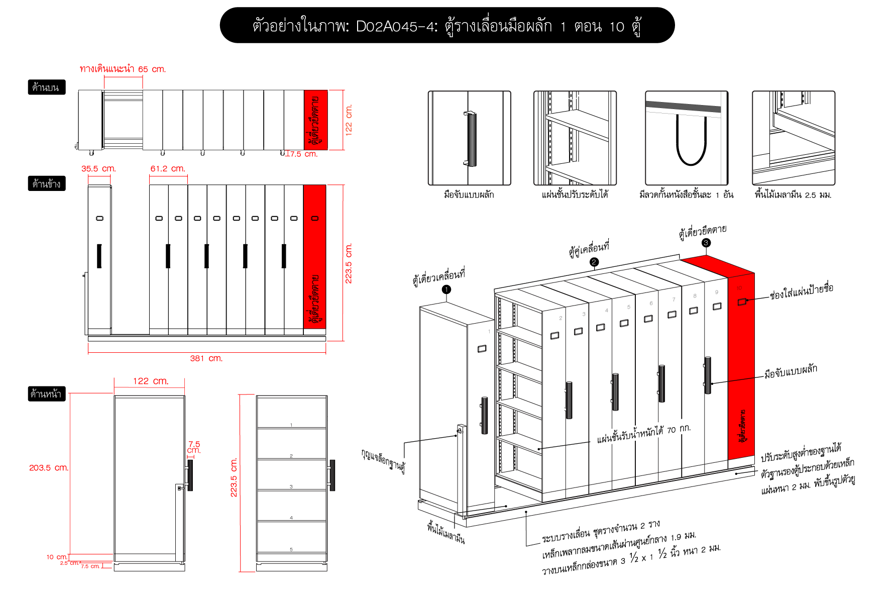 : 10 ตู้ 381W*122D*223.5H cm. (ความจุ 750 แฟ้ม)