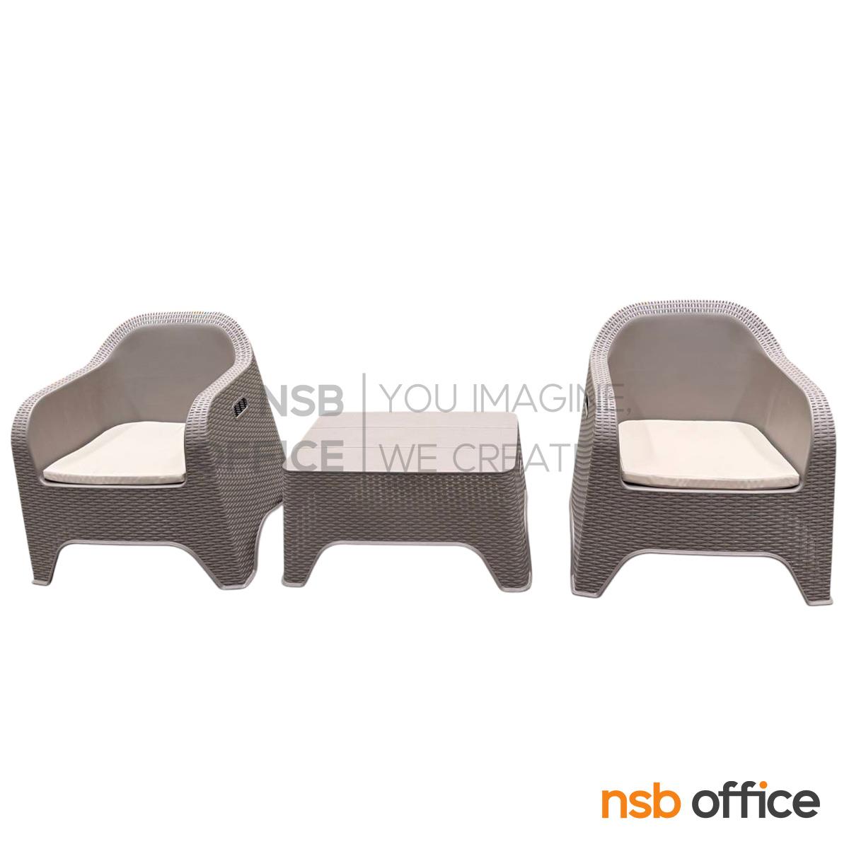 G08A365: ชุดโซฟาสนาม 2 ที่นั่ง รุ่น Ricky (ริกกี้) ขนาด 80W cm. โครงพลาสติกพียูลายหวาย