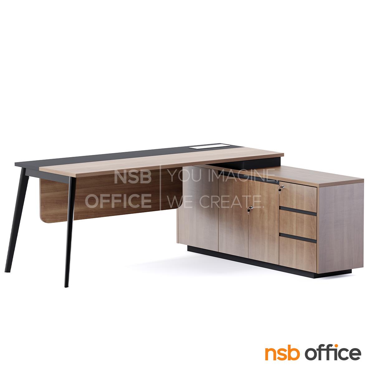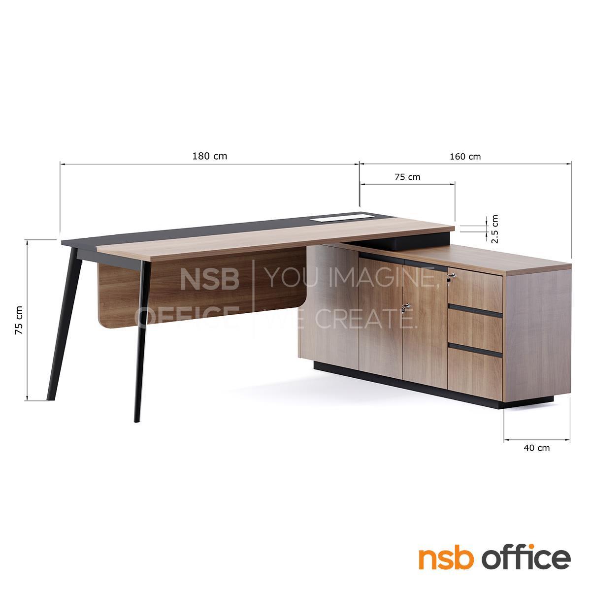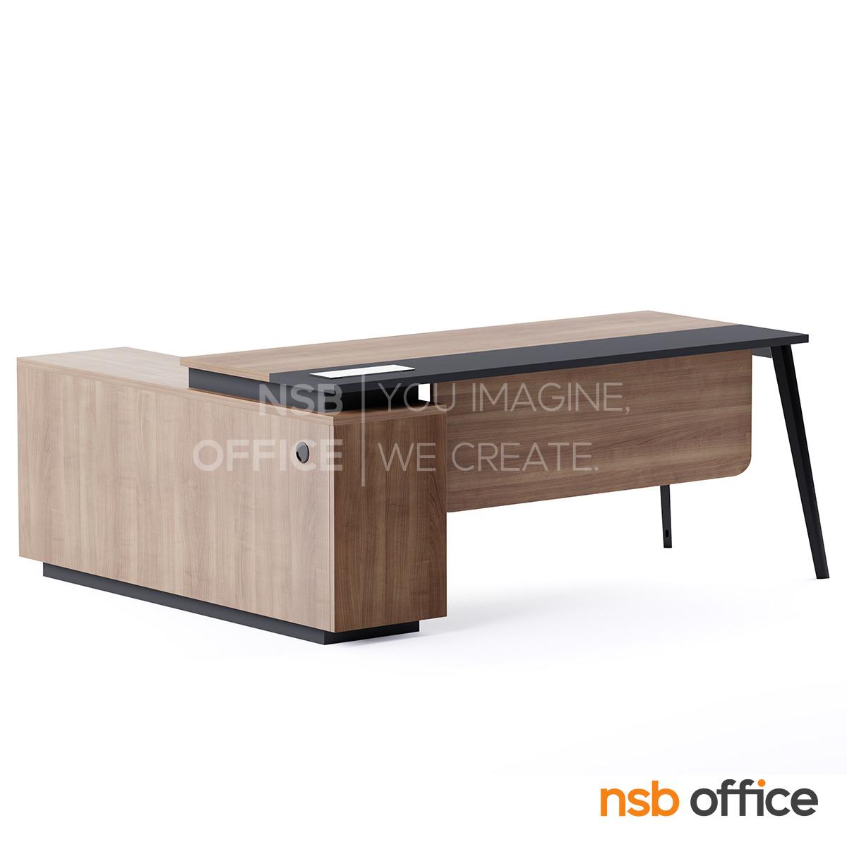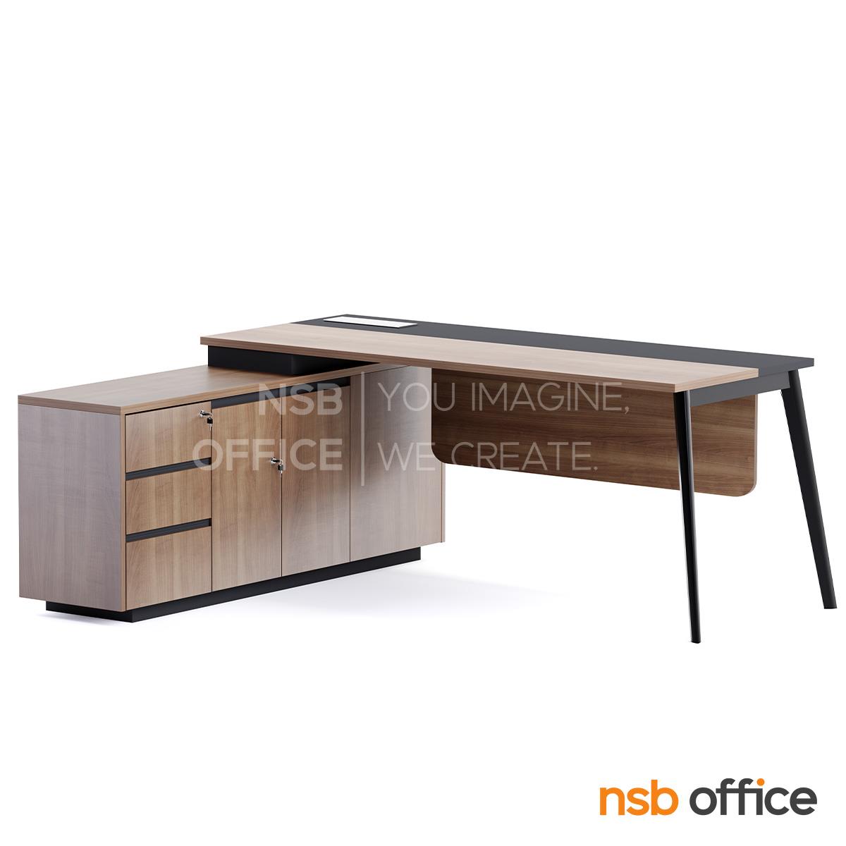 A28A007: โต๊ะผู้บริหารตัวแอล รุ่น Lisianthus (ไลเซนทัส) ขนาด 180W cm. บังตาไม้ ขาเหล็ก