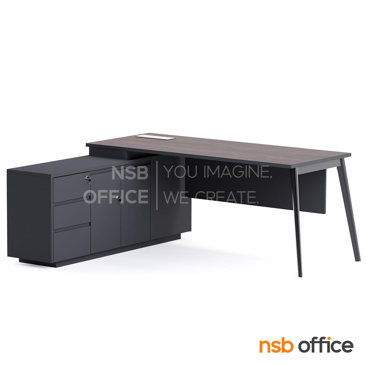 A28A008: โต๊ะผู้บริหารตัวแอล รุ่น Lapins (ลาพินส์) ขนาด 180W cm. บังตาไม้ ขาเหล็ก
