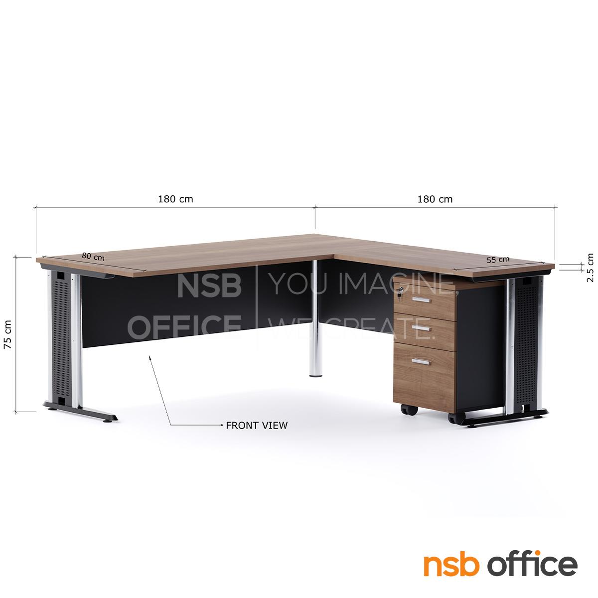 A28A009: โต๊ะทำงานผู้บริหาร รุ่น Malbec (มาลเบค) ขนาด 180W1*180W2 พร้อม ตู้ 3 ลิ้นชักล้อเลื่อน