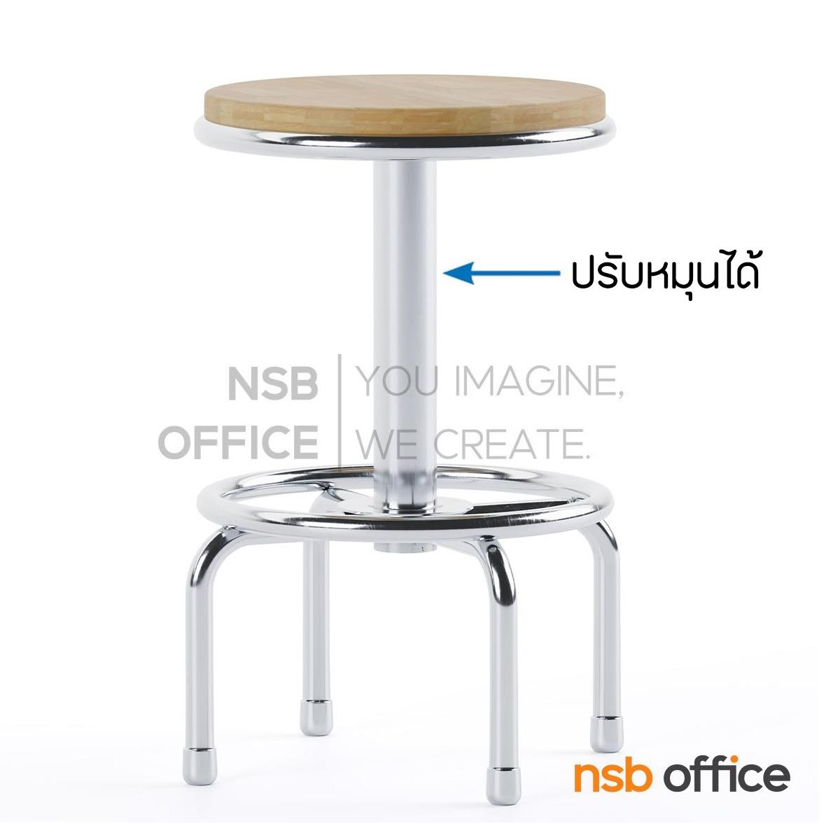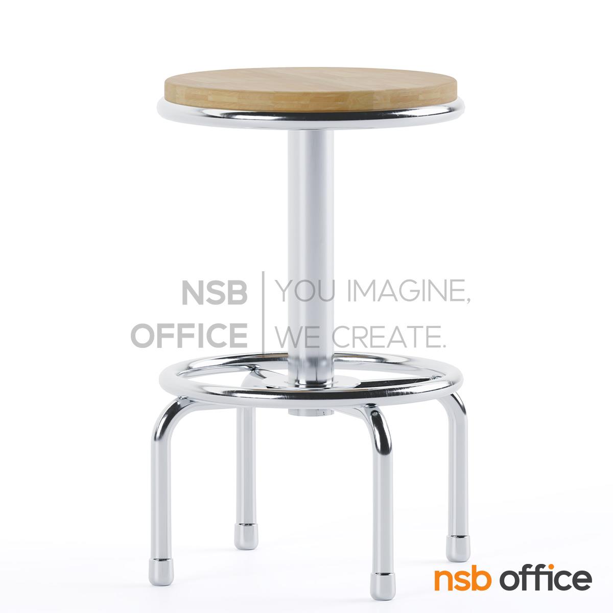 : เก้าอี้บาร์กลมหน้าไม้ยางพารา รุ่น Roxy (ร็อกซี่) ขาเหล็กชุบโครเมี่ยม