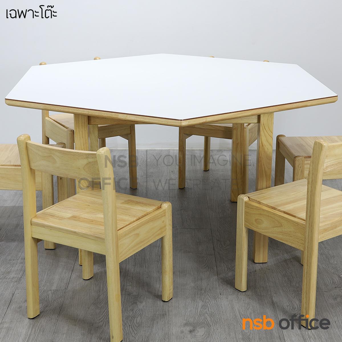 G20A073: โต๊ะไม้ยางพาราหน้าลามิเนต HPL ทรงหกเหลี่ยม รุ่น Tuffy (ทัฟฟี่)