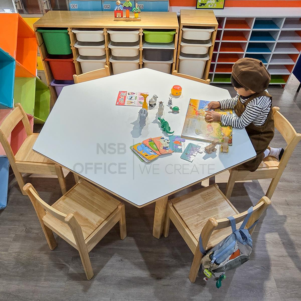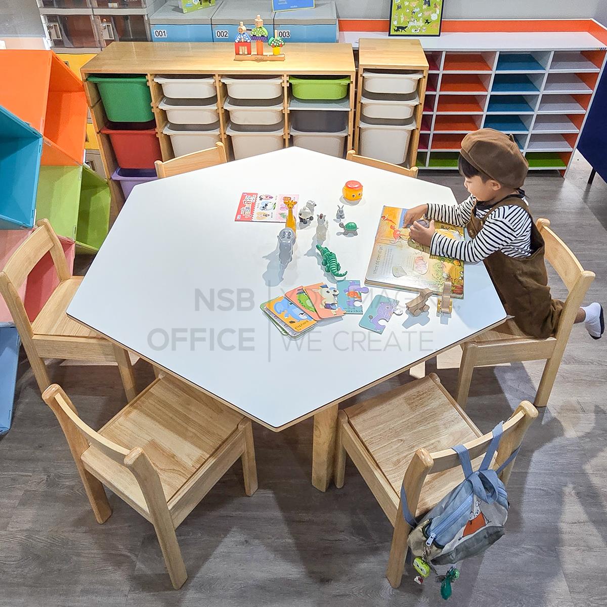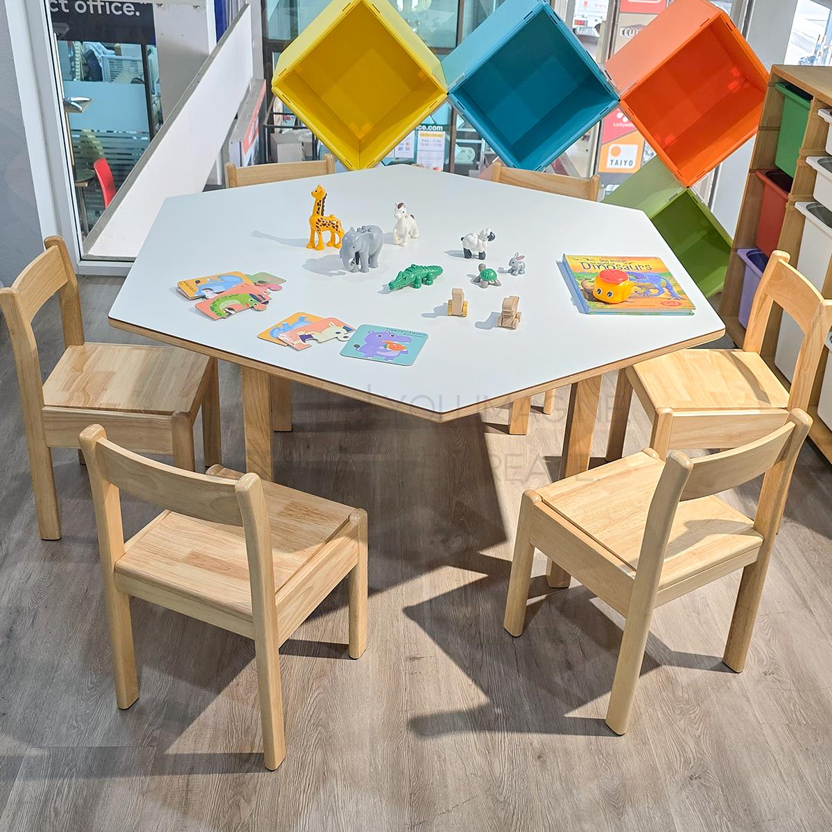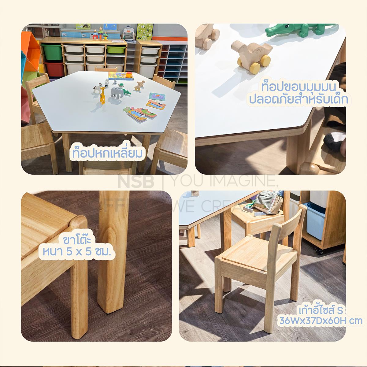 G20A074: ชุดโต๊ะนักเรียนหกเหลี่ยม 6 ที่นั่ง หน้าลามิเนต HPL รุ่น Tortilla (ทอร์ทิลลา) พร้อมเก้าอี้