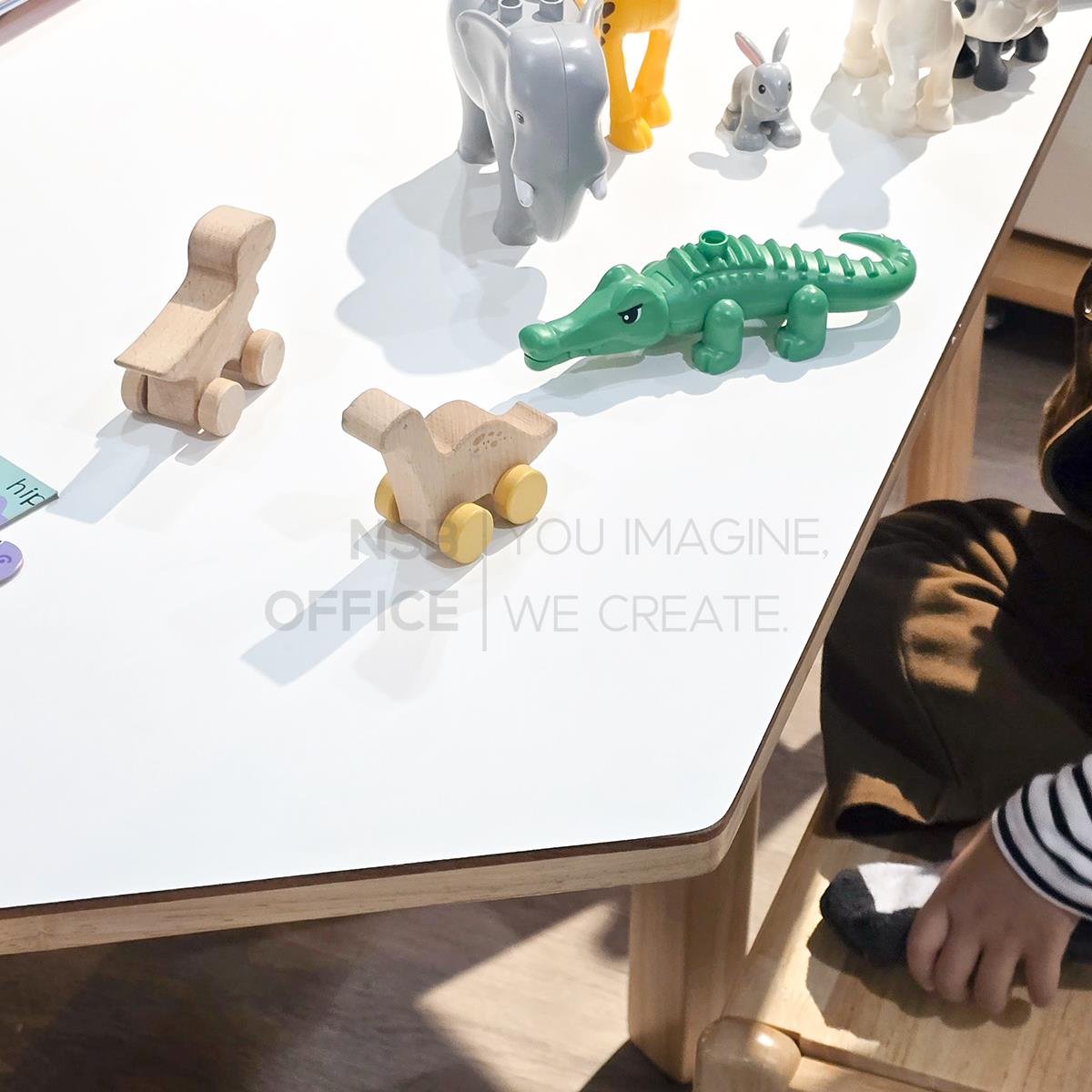 หน้าท็อปโต๊ะเป็นรูปทรงหกเหลี่ยม