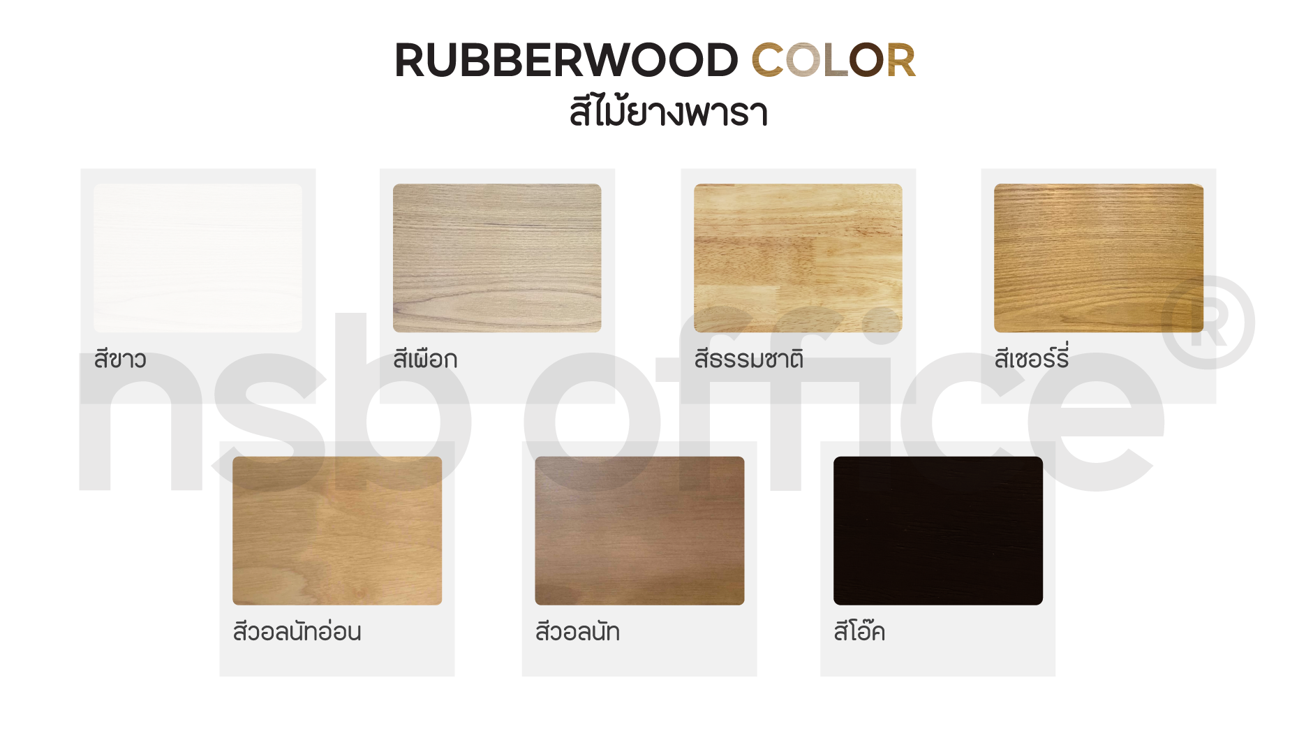 ตัวอย่างชาร์ตสีไม้ยางพาราสีจริง