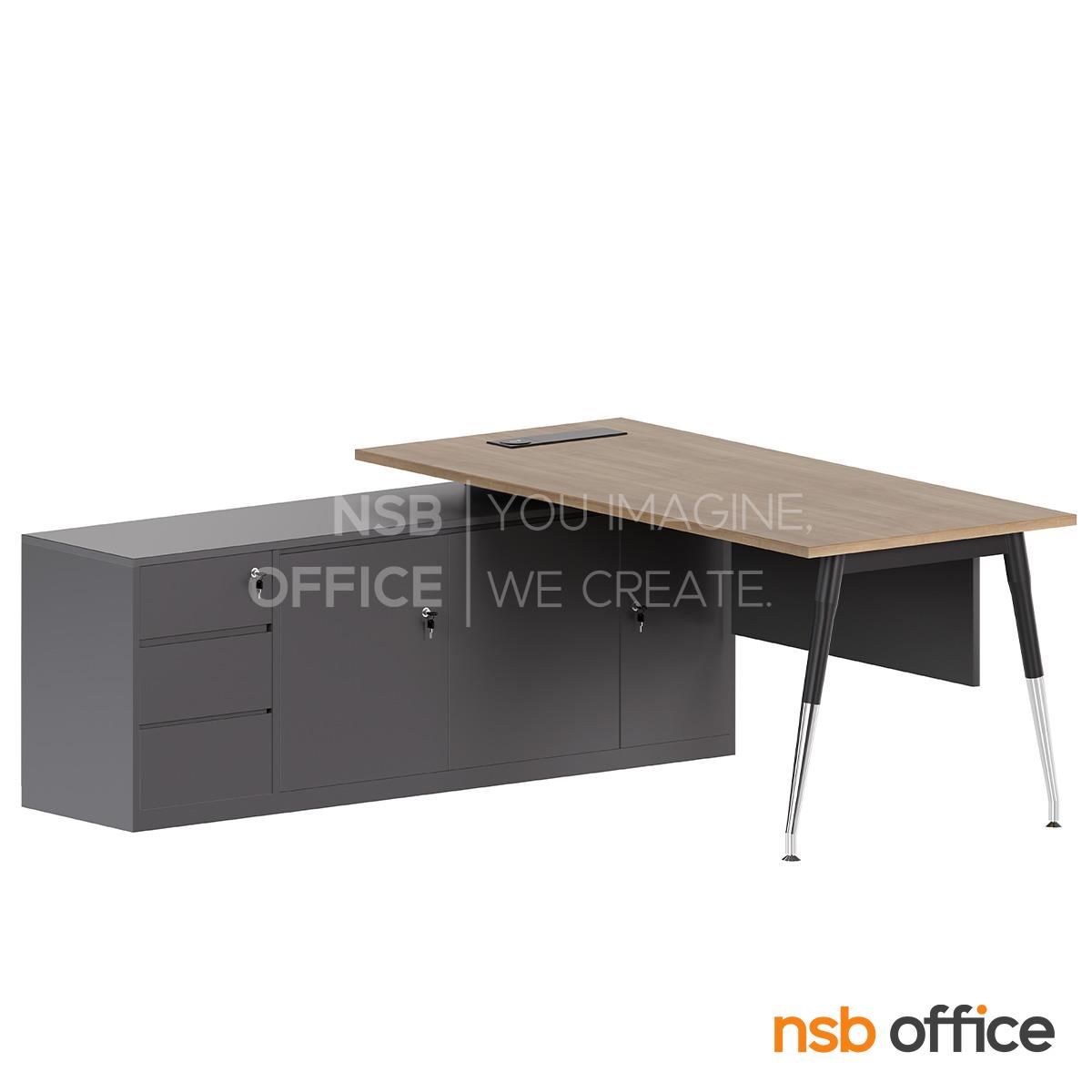 A28A010: โต๊ะผู้บริหารตัวแอล รุ่น Cordura (คอร์ดูร่า) ขนาด 180W cm. บังตาไม้ ขาเหล็ก