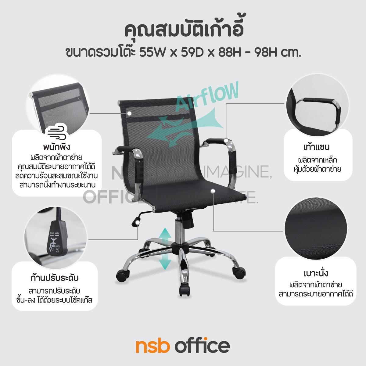 B24A398: เก้าอี้สำนักงานหลังเน็ต รุ่น Parmesan (พาร์เมซาน) โช้คแก๊ส ก้อนโยก ขาเหล็กชุบโครเมี่ยม