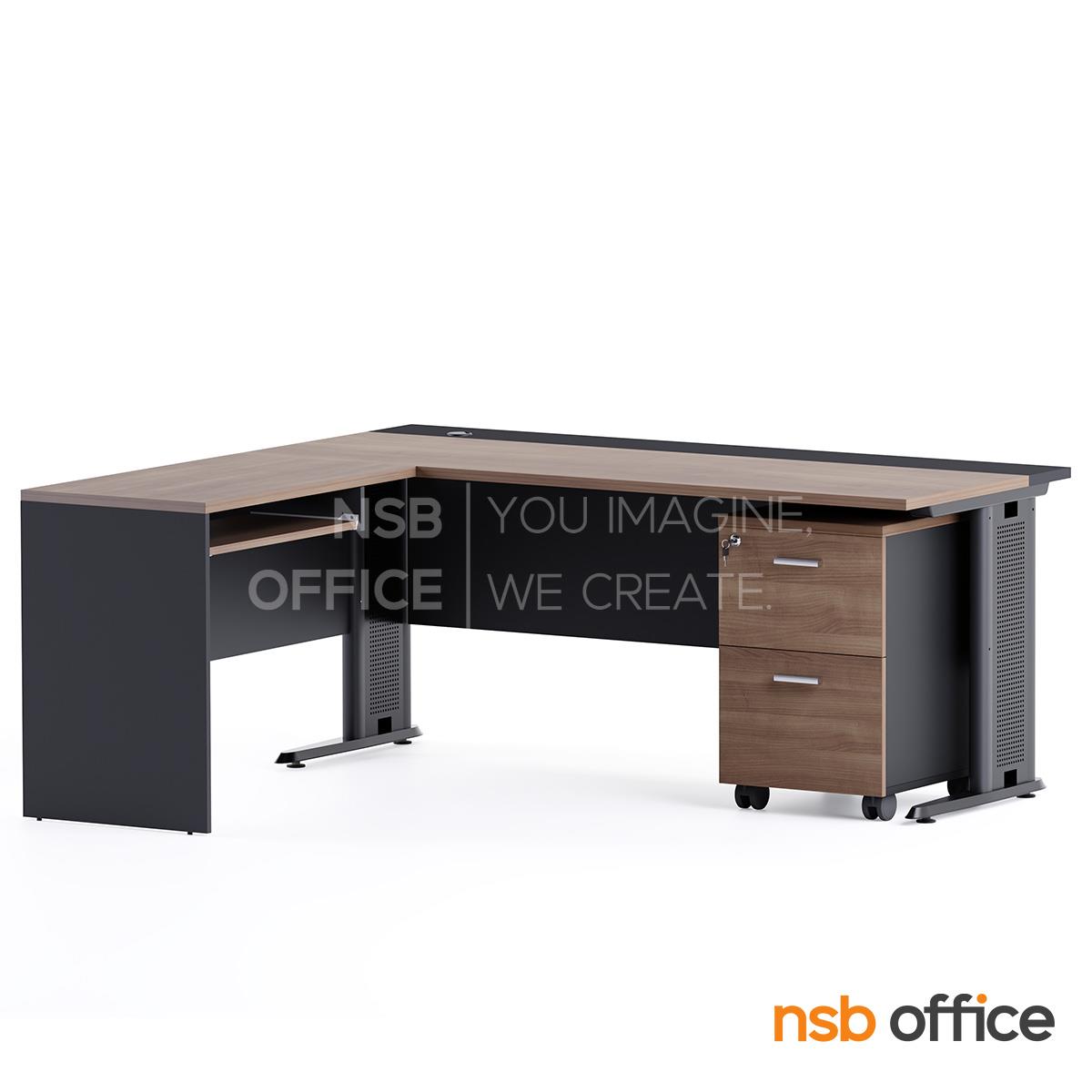 A28A011: โต๊ะผู้บริหารตัวแอล รุ่น Morello (โมเรลโล) ขนาด 180W1*160W2 cm. ขาเหล็ก พร้อมตู้ลิ้นชักล้อเลื่อน