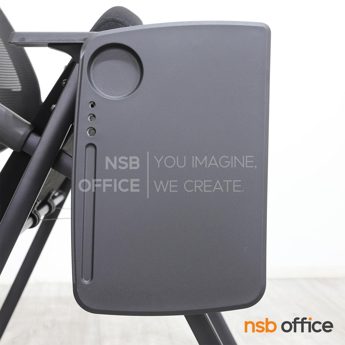 เท้าแขนแผ่นเลคเชอร์ของเก้าอี้อยู่ทางด้านขวา ออกแบบมาเพื่อการใช้งานสำหรับคนถนัดมือขวา