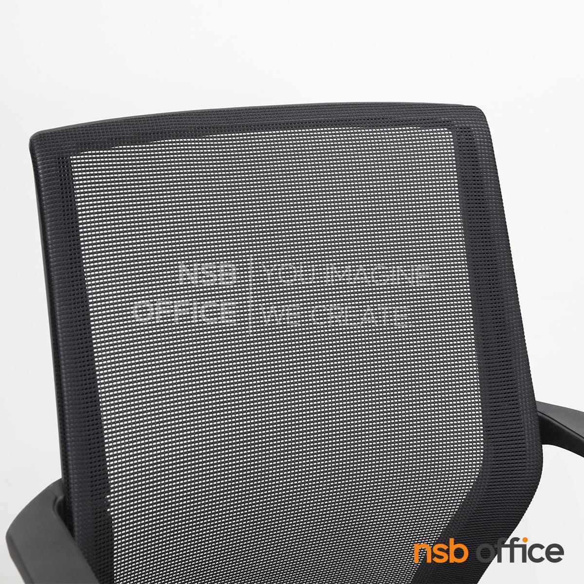 พนักพิงผลิตจากผ้าตาข่าย (Mesh) คุณสมบัติระบายอากาศได้ดี ลดความร้อนสะสมขณะใช้งาน พร้อมโครงสร้างรองรับแผ่นหลังเพื่อความสบายและรองรับสรีระในการนั่งทำงานระยะยาว