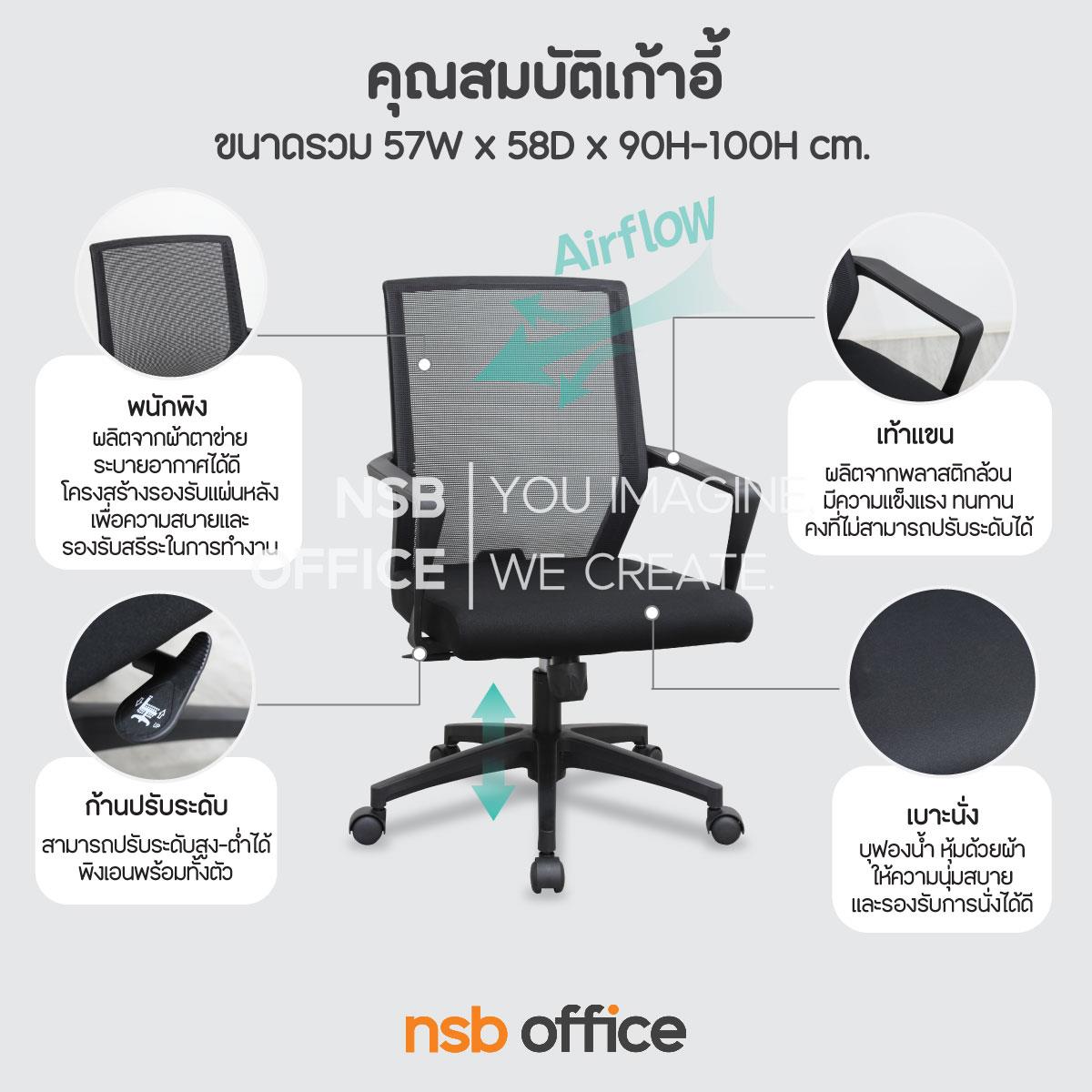 B24A399: เก้าอี้สำนักงานหลังเน็ต รุ่น Oregano (ออริกาโน) โช้คแก๊ส ก้อนโยก ขาพลาสติก
