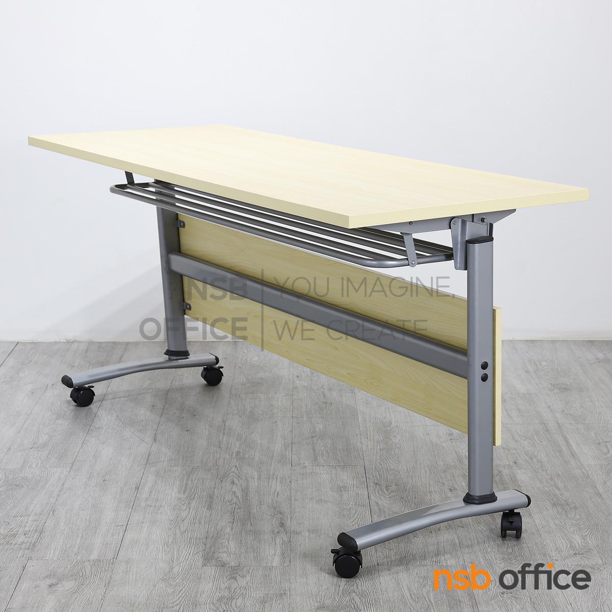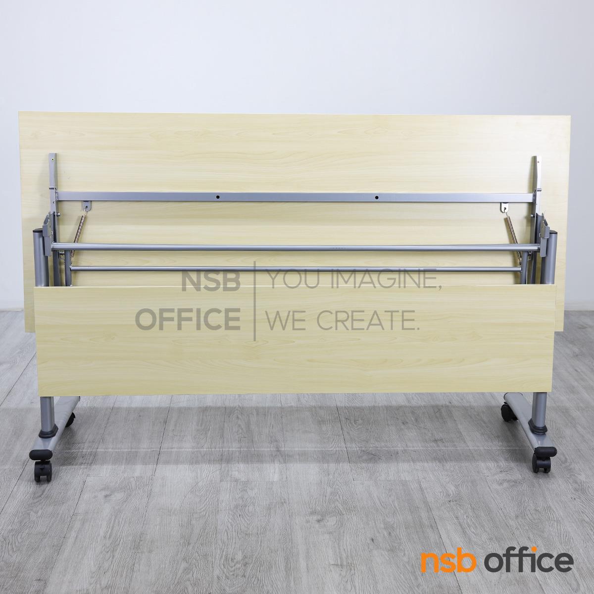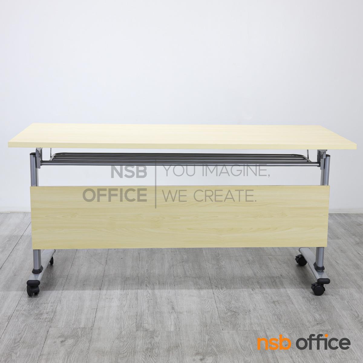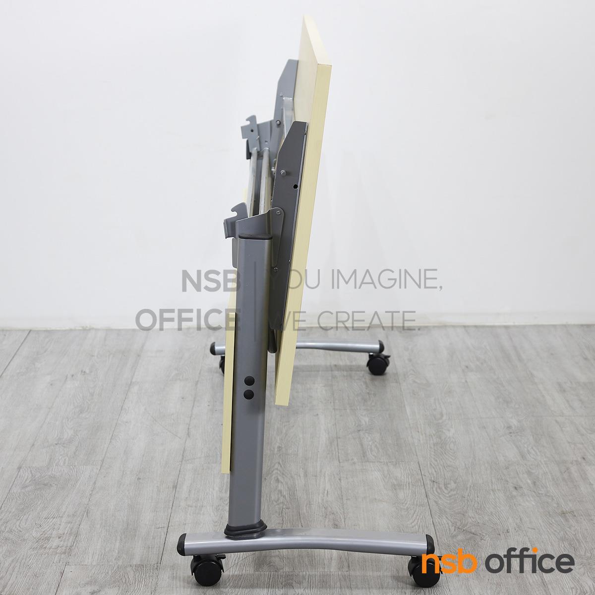 A20A053: โต๊ะประชุมพับเก็บได้ล้อเลื่อน รุ่น Langfoss (ลังฟอสส์) ขนาด 150W cm. โครงขาเหล็กสีเทา บังตาไม้ ล้อล็อกได้