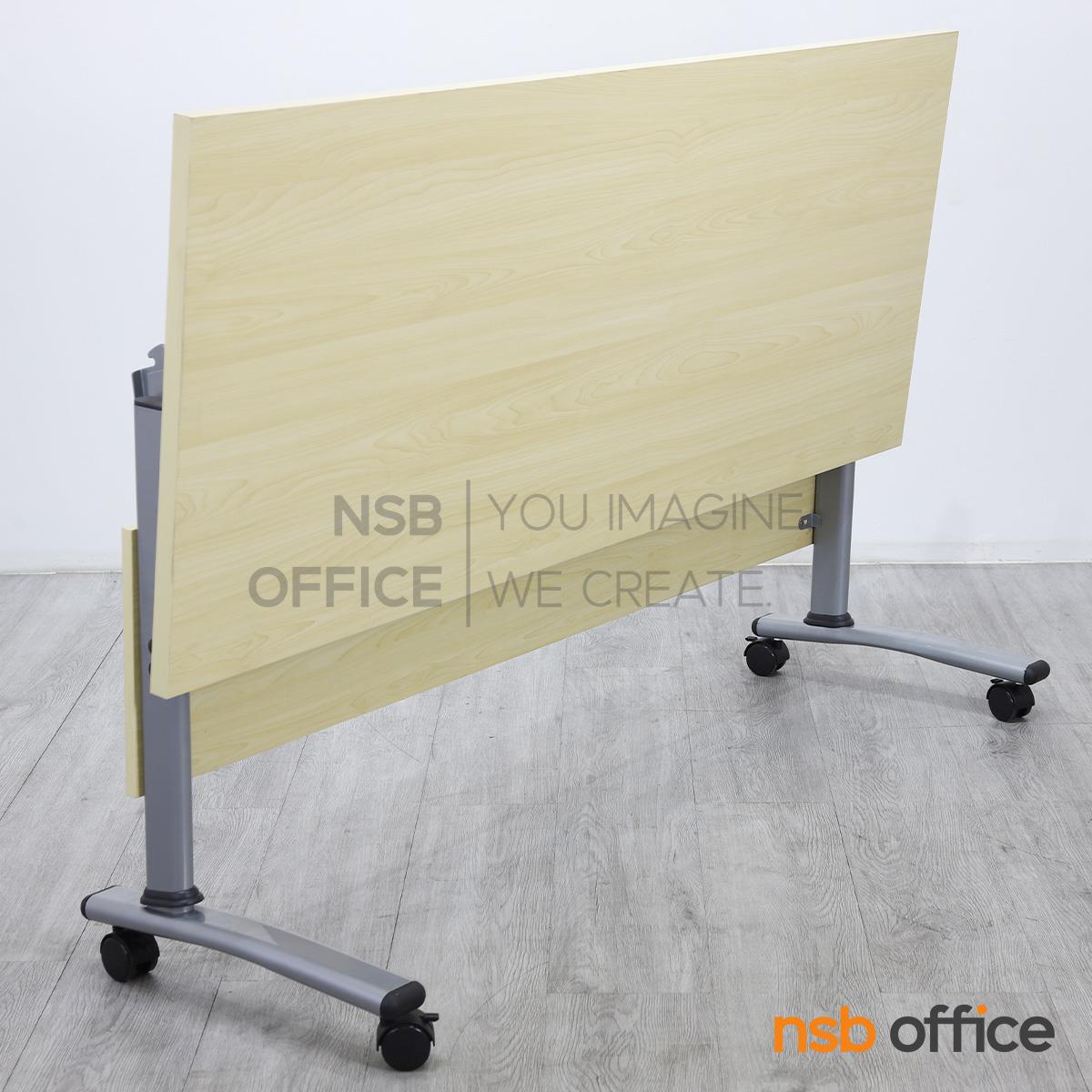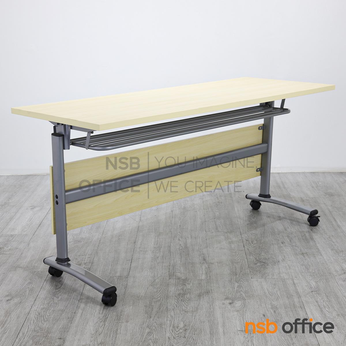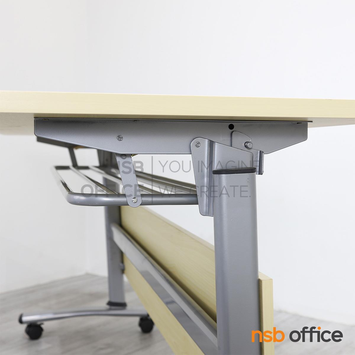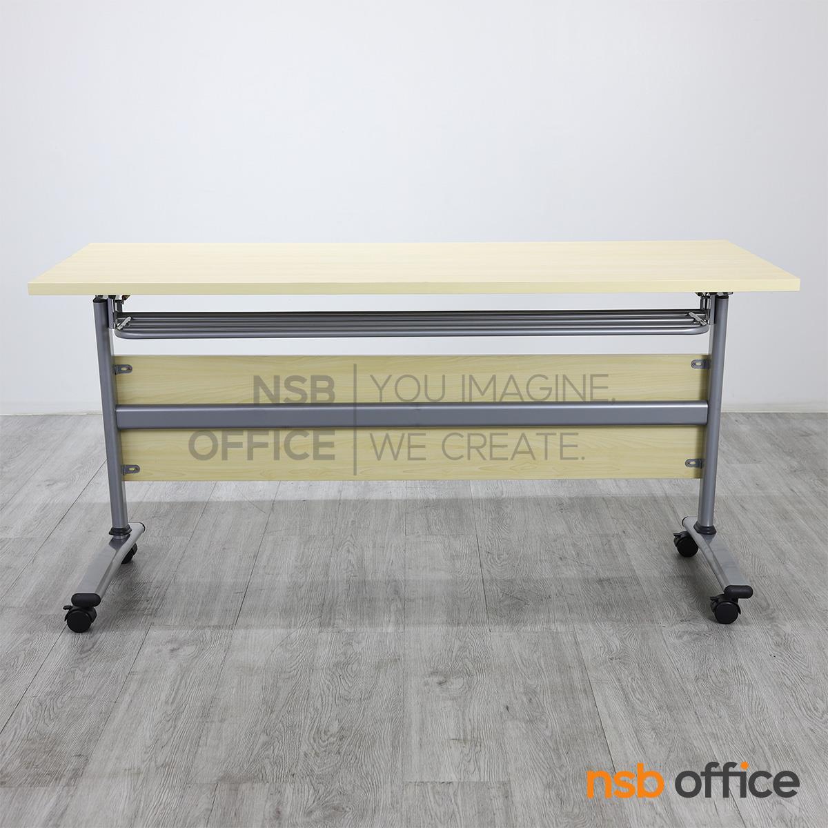 A20A053: โต๊ะประชุมพับเก็บได้ล้อเลื่อน รุ่น Langfoss (ลังฟอสส์) ขนาด 150W cm. โครงขาเหล็กสีเทา บังตาไม้ ล้อล็อกได้