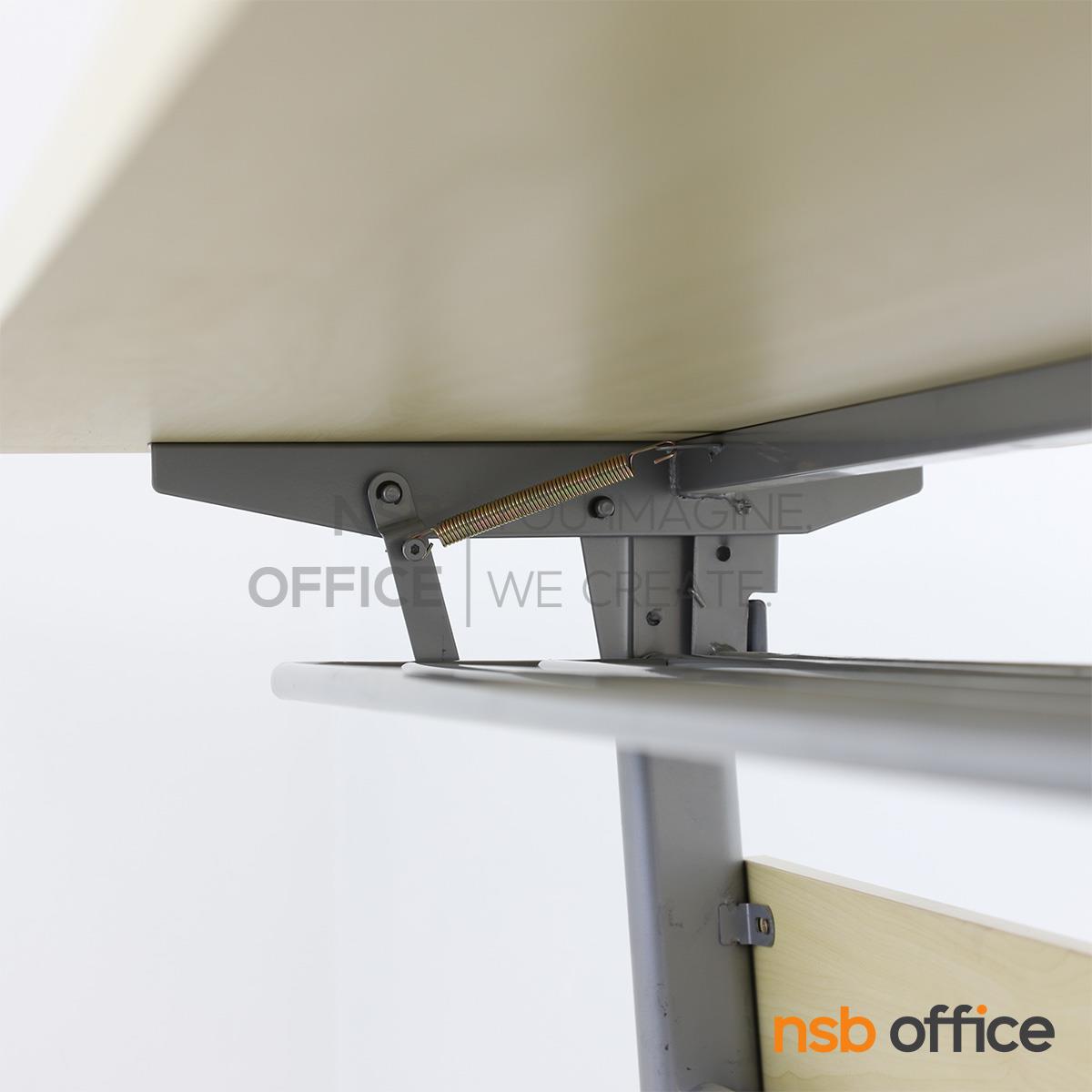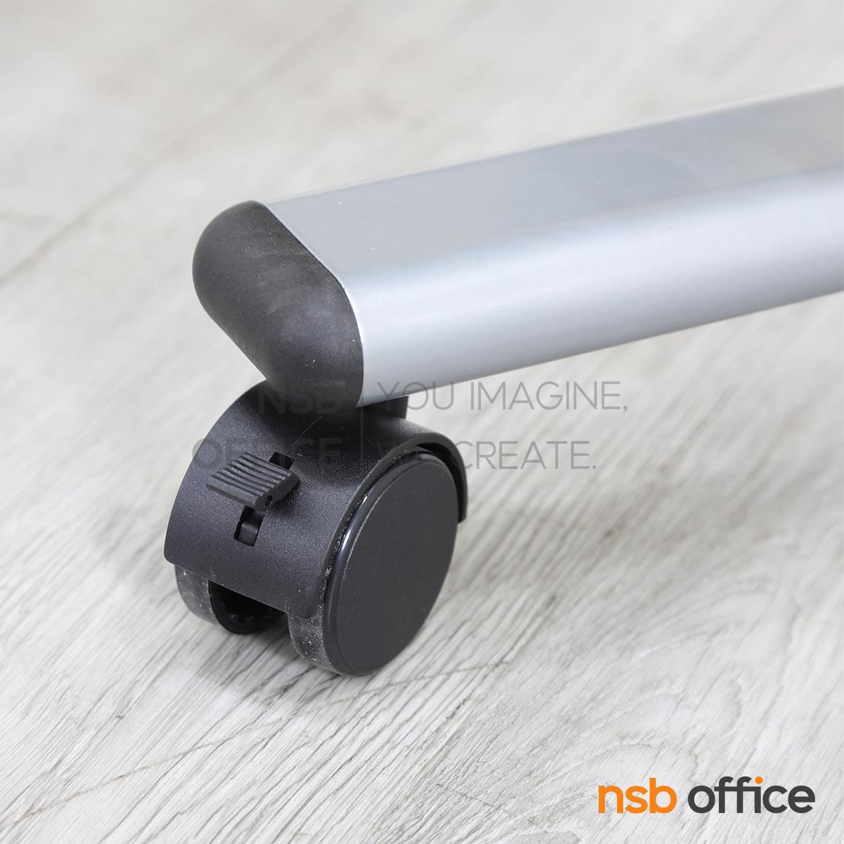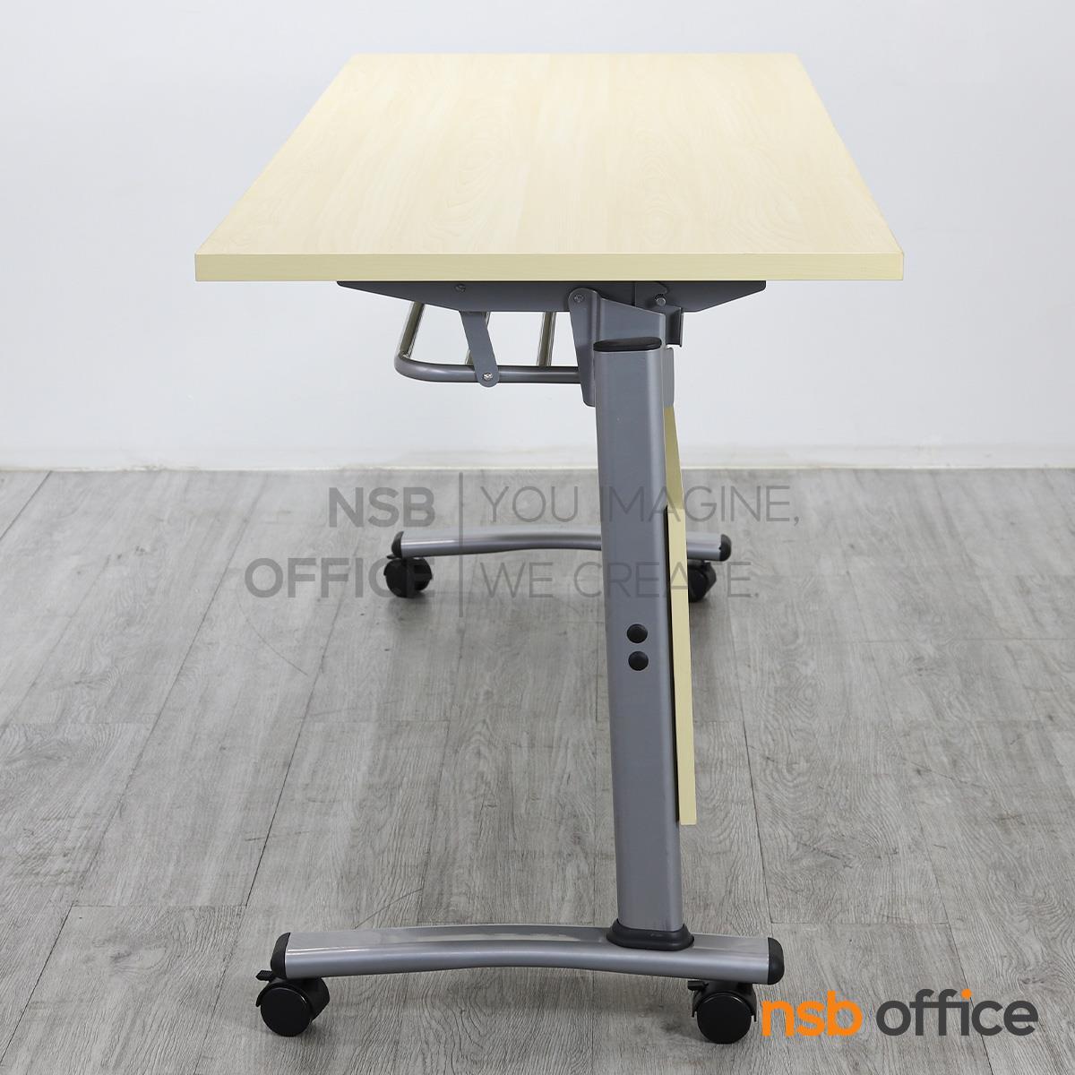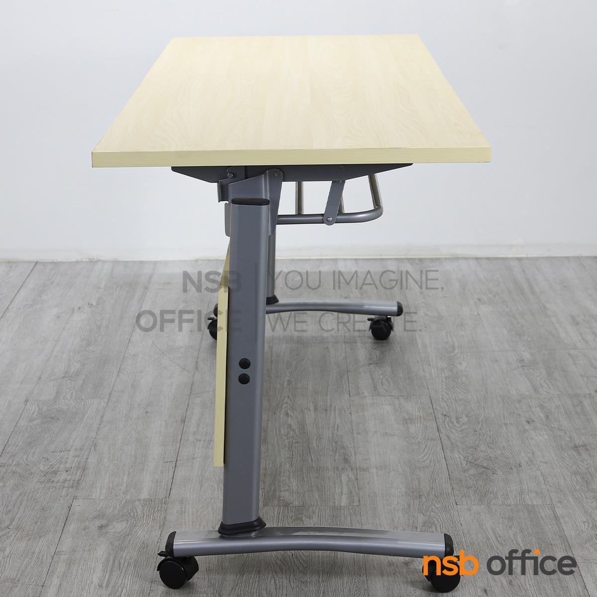 A20A053: โต๊ะประชุมพับเก็บได้ล้อเลื่อน รุ่น Langfoss (ลังฟอสส์) ขนาด 150W cm. โครงขาเหล็กสีเทา บังตาไม้ ล้อล็อกได้