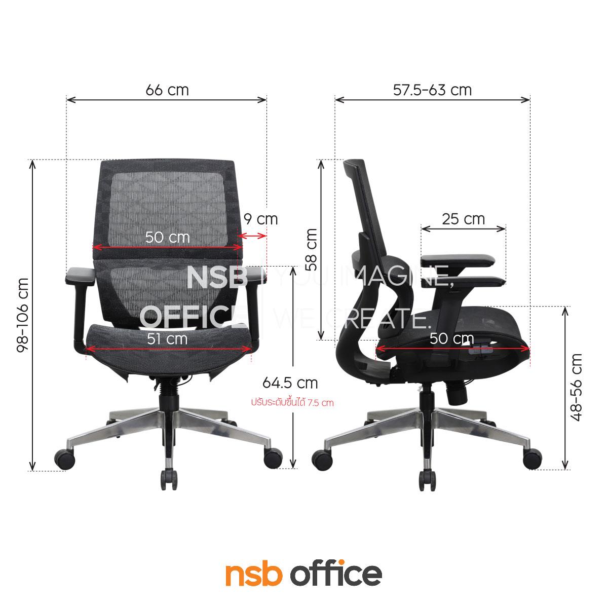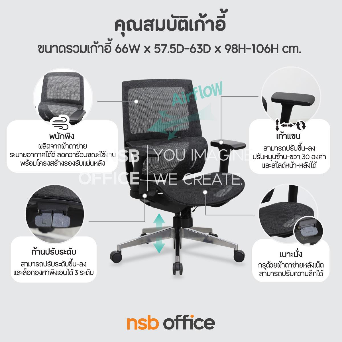 B24A400: เก้าอี้สำนักงานหลังเน็ต รุ่น Merino (เมอริโน) โช้คแก๊ส ก้อนโยก ขาอลูมิเนียม