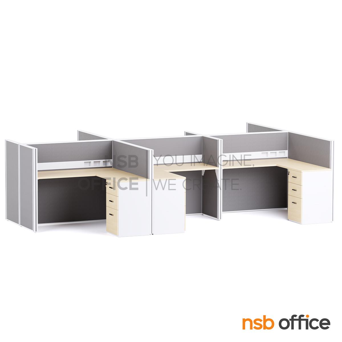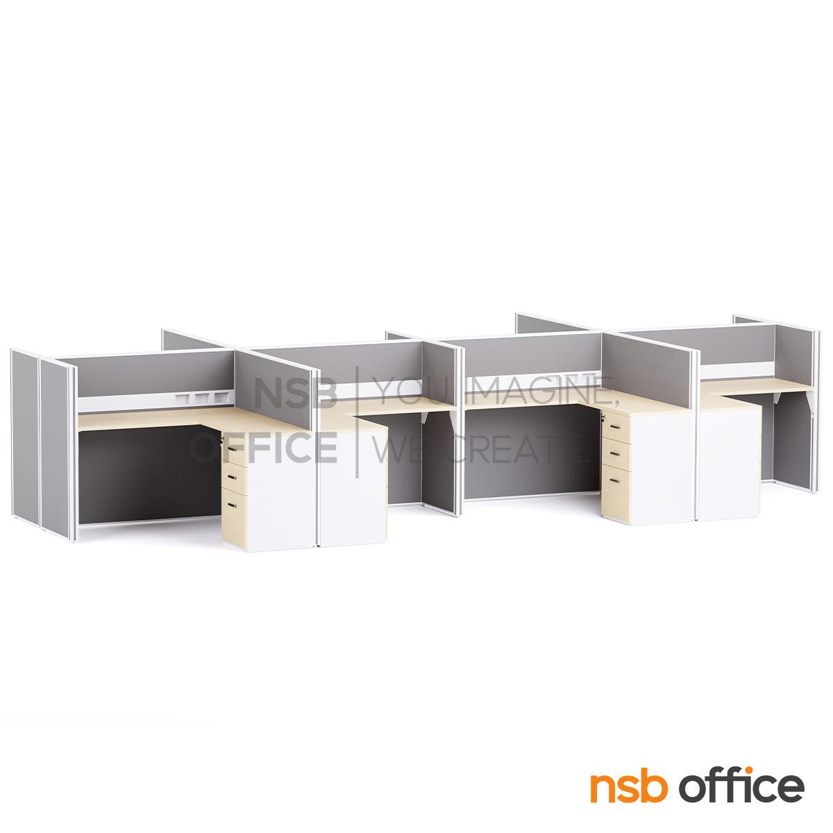 A02A031: โต๊ะทำงานกลุ่มตัวแอล รุ่น Vignette (วิกเน็ต) 4, 6 และ 8 ที่นั่ง พร้อมพาร์ทิชั่นทึบ รางไฟตรงกลาง