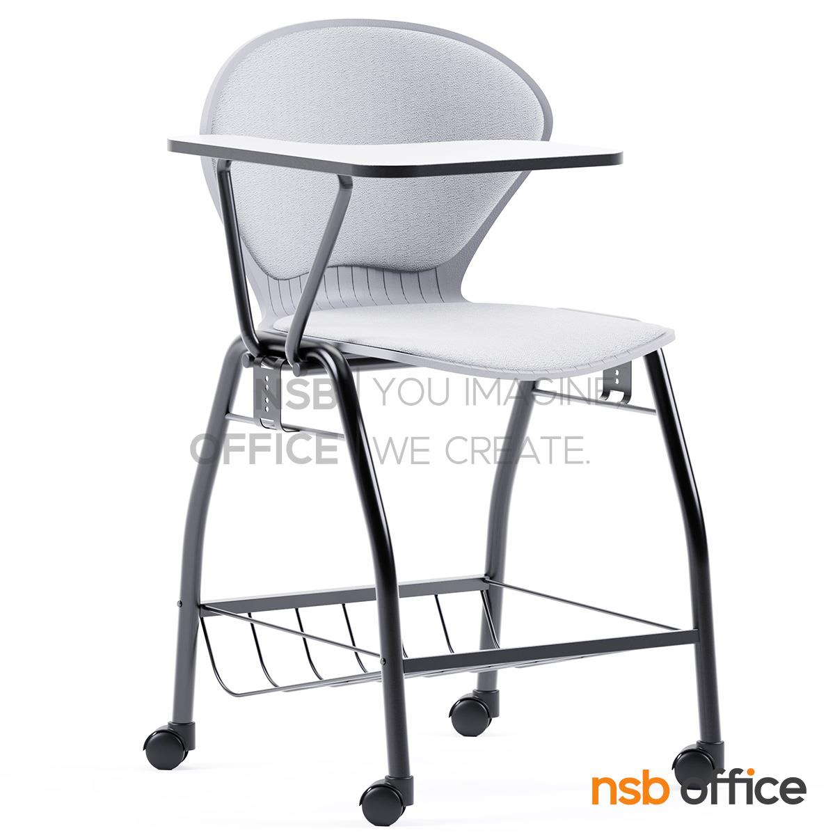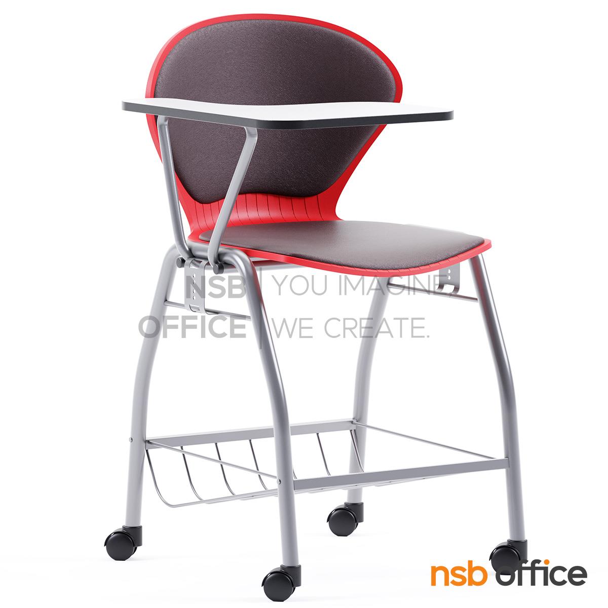 : เก้าอี้เลคเชอร์เฟรมโพลี่ รุ่น Nathan (เนธาน) พนักพิงและเบาหุ้ม มีตะแกรงวางของ ขาเหล็กพ่นสี