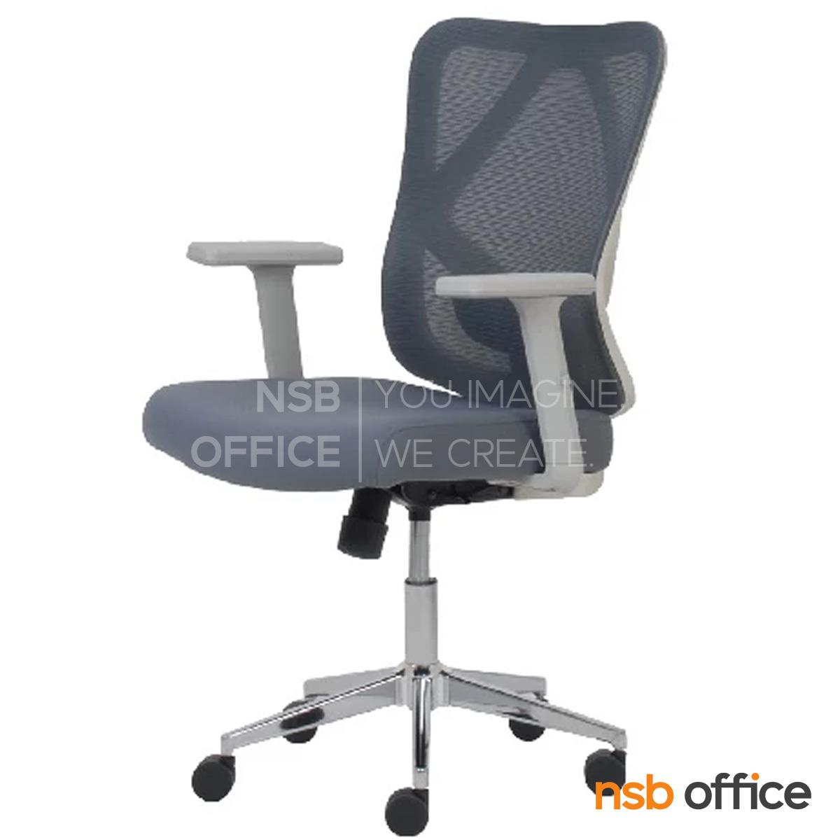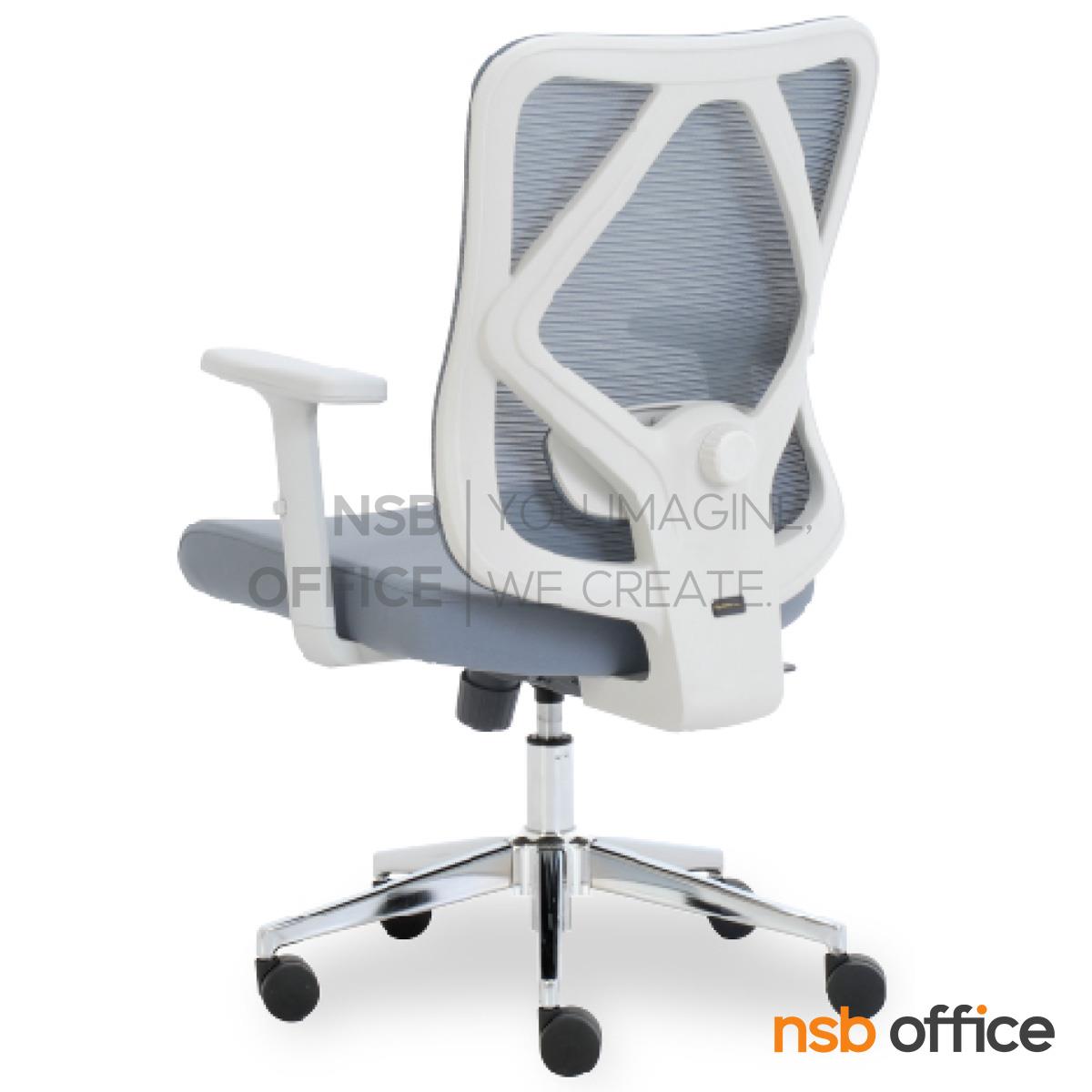 พนักพิงผลิตจากผ้าตาข่าย (Mesh) คุณสมบัติระบายอากาศได้ดี ลดความร้อนสะสมขณะใช้งาน พร้อมโครงสร้างรองรับแผ่นหลังเพื่อความสบายและรองรับสรีระในการนั่งทำงานระยะยาว