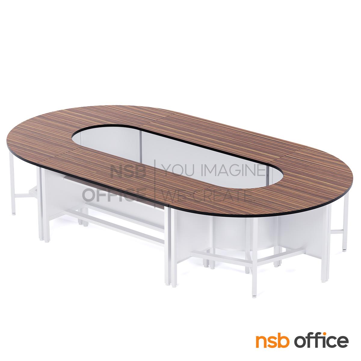 A18A134: โต๊ะประชุมตัวต่อรูปตัวโอ Top โฟเมก้า รุ่น Elvarex (เอลวาเร็กซ์) ขนาด 330W*180D cm. ขาเหล็ก