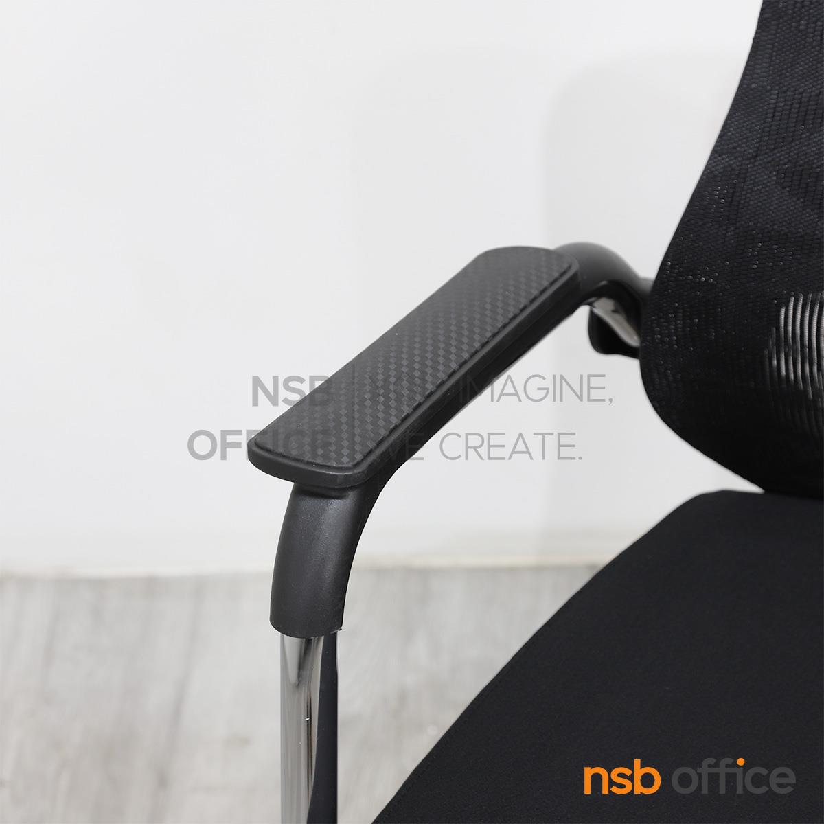 พนักพิงผลิตจากผ้าตาข่าย (Mesh) คุณสมบัติระบายอากาศได้ดี ลดความร้อนสะสมขณะใช้งาน พร้อมโครงสร้างรองรับแผ่นหลังเพื่อความสบายและรองรับสรีระในการนั่งทำงานระยะยาว