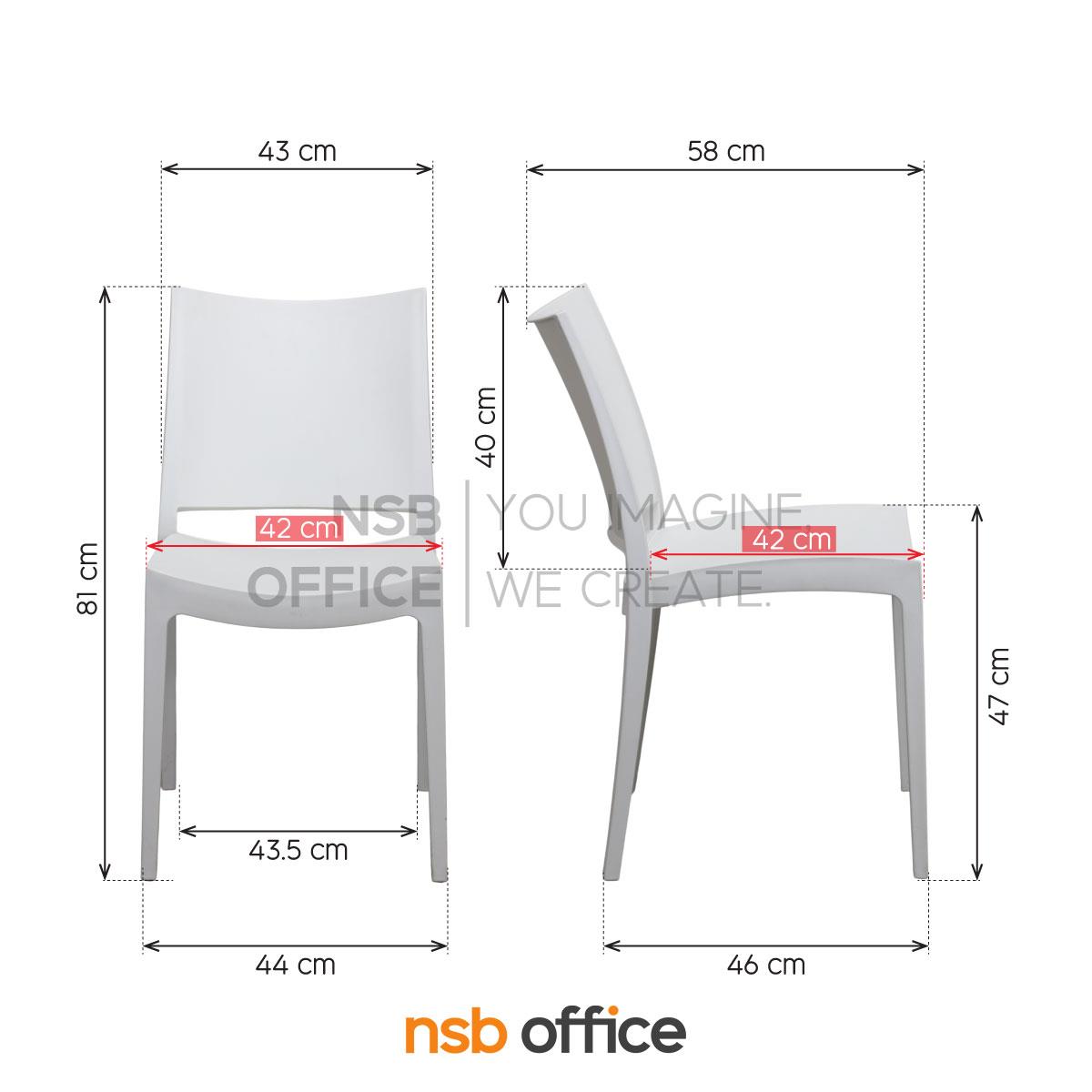 โครงสร้างเก้าอี้ผลิตจากพลาสติก Polypropylene (PP) มีความแข็งแรง ยืดหยุ่น ทนทาน