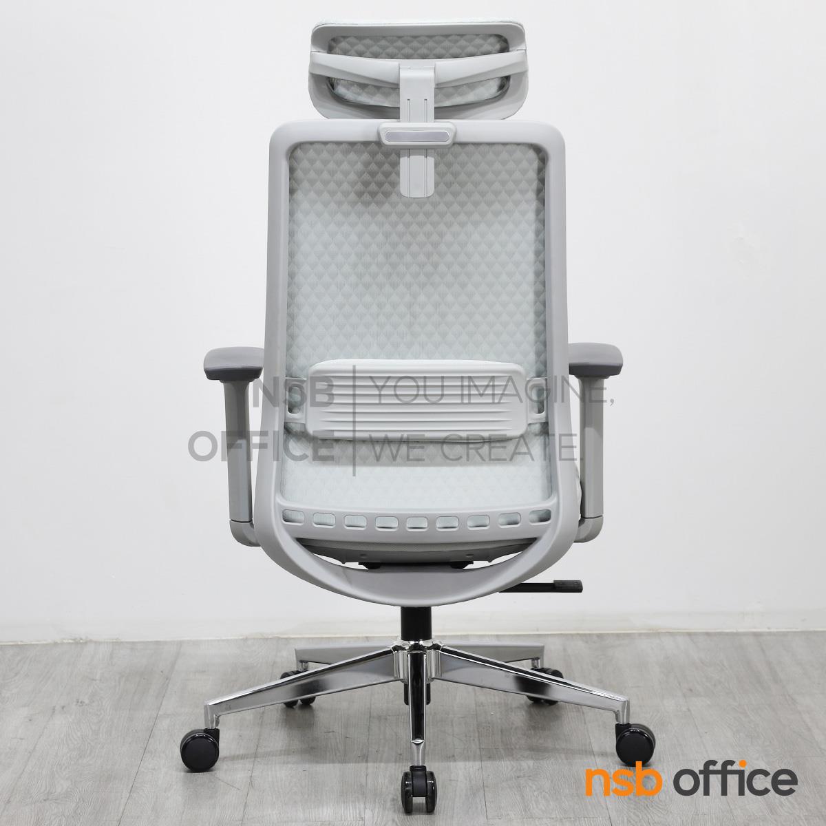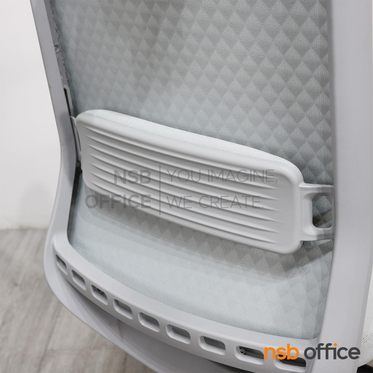 พนักพิงผลิตจากผ้าตาข่าย (Mesh) คุณสมบัติระบายอากาศได้ดี ลดความร้อนสะสมขณะใช้งาน พร้อมโครงสร้างรองรับแผ่นหลังเพื่อความสบายและรองรับสรีระในการนั่งทำงานระยะยาว