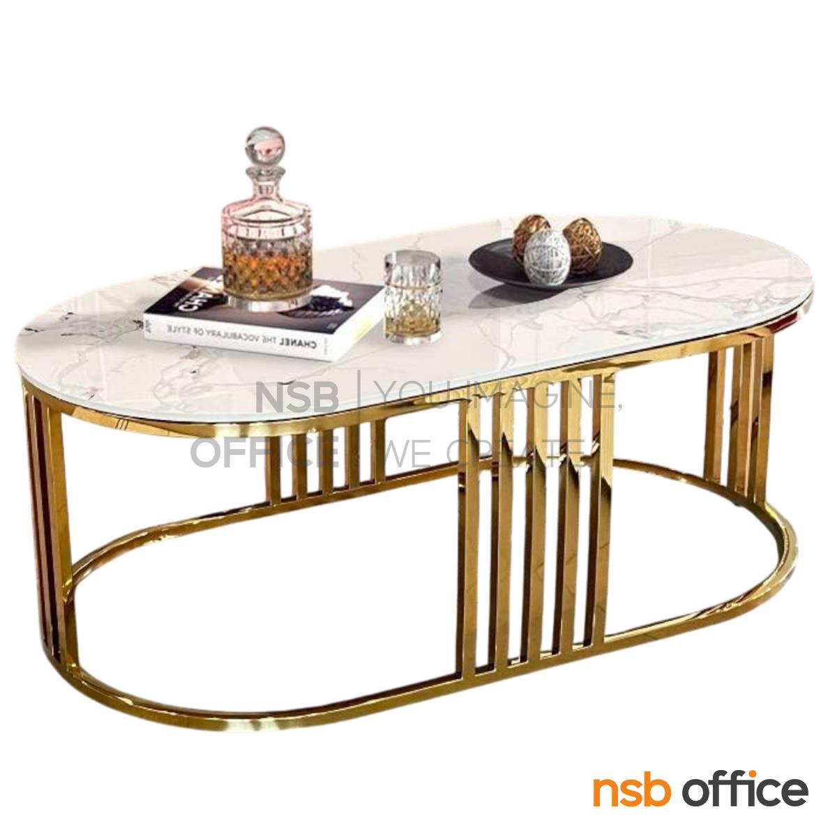 B42A003: โต๊ะกลางหน้าหิน รุ่น Volanir (โวลาเนียร์) ขนาด 120W cm. โครงขาสแตนเลสสีทอง