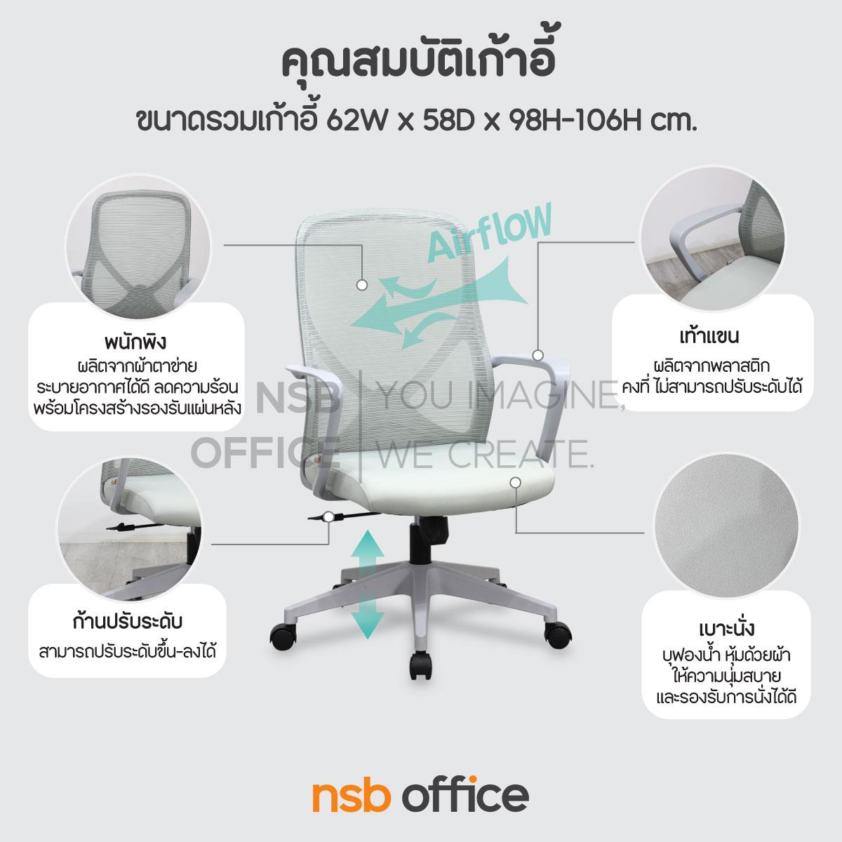 : เก้าอี้สำนักงานหลังเน็ต รุ่น Carnell (คาร์เนลล์) โช้คแก๊ส ก้อนโยก ขาพลาสติก