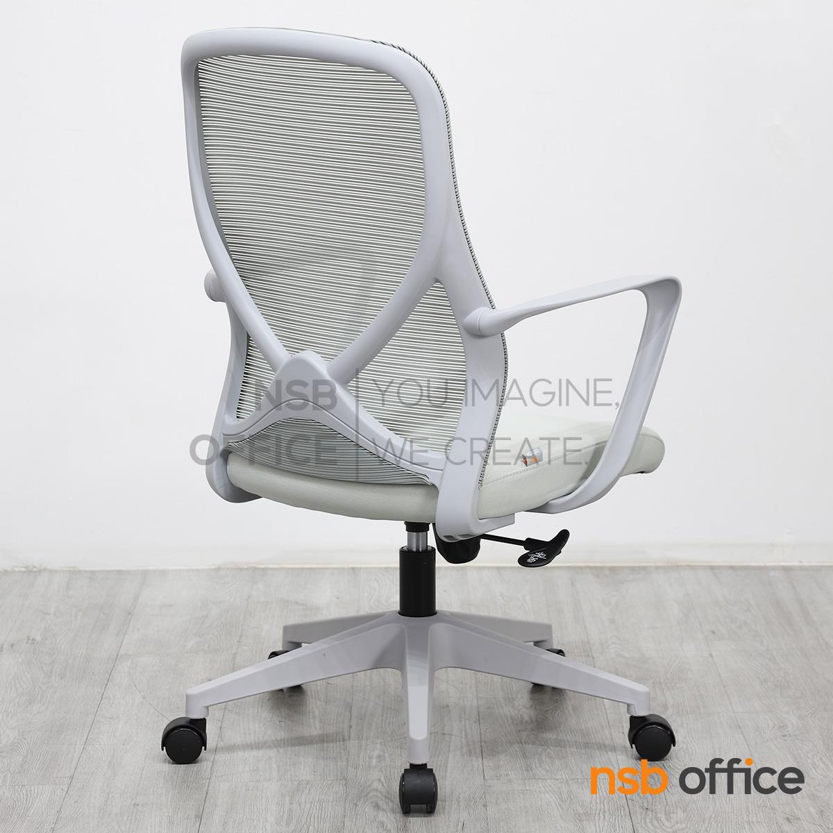 พนักพิงผลิตจากผ้าตาข่าย (Mesh) คุณสมบัติระบายอากาศได้ดี ลดความร้อนสะสมขณะใช้งาน พร้อมโครงสร้างรองรับแผ่นหลังเพื่อความสบายและรองรับสรีระในการนั่งทำงานระยะยาว