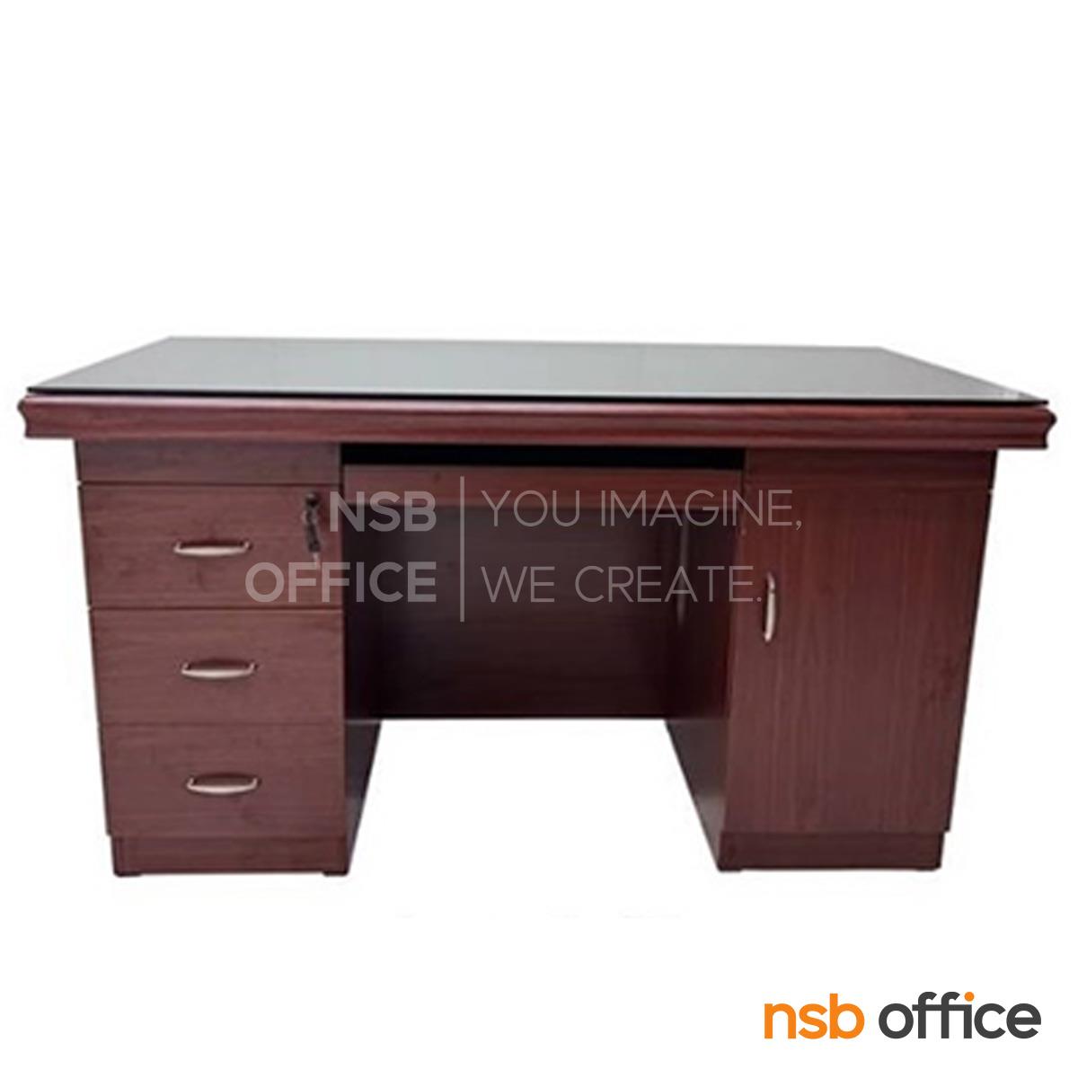 A06A166: โต๊ะผู้บริหารทรงตรง รุ่น Hanover (ฮันโนเวอร์) ขนาด 140W , 160W cm. พร้อมตู้ลิ้นชักและรางคีย์บอร์ด