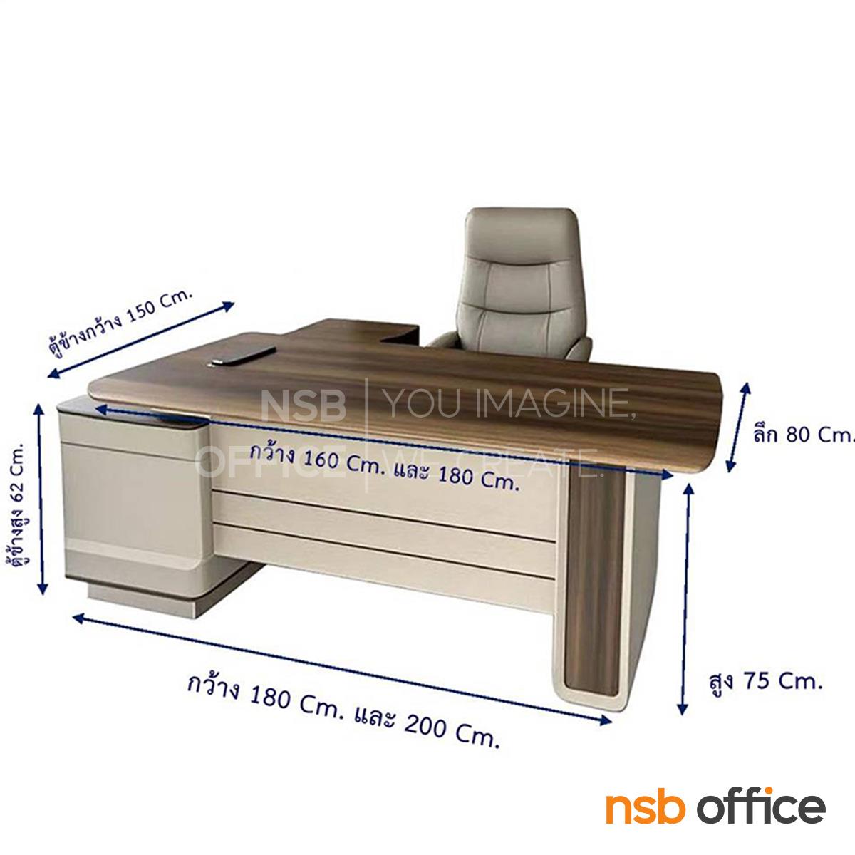 A30A092: โต๊ะผู้บริหารตัวแอล รุ่น Kardos (คาร์ดอส) ขนาด 180W , 200W cm. พร้อมตู้ข้าง